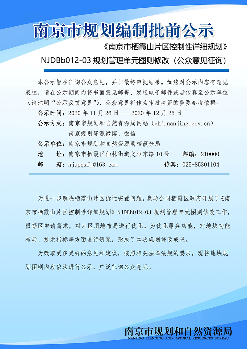 《南京市栖霞山片区控制性详细规划》 NJDBb012-03规划管理单元图则修改(公众意见征询)