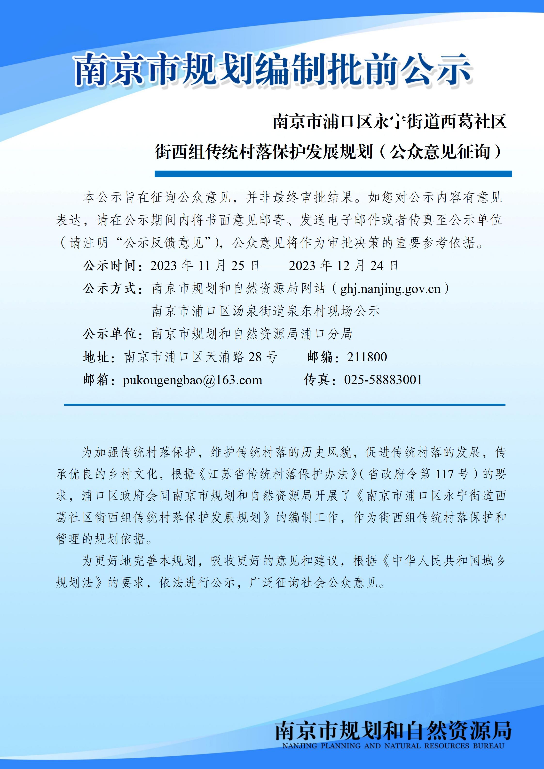 浦口区永宁街道西葛社区街西组传统村落保护发展规划(公众意见征询)