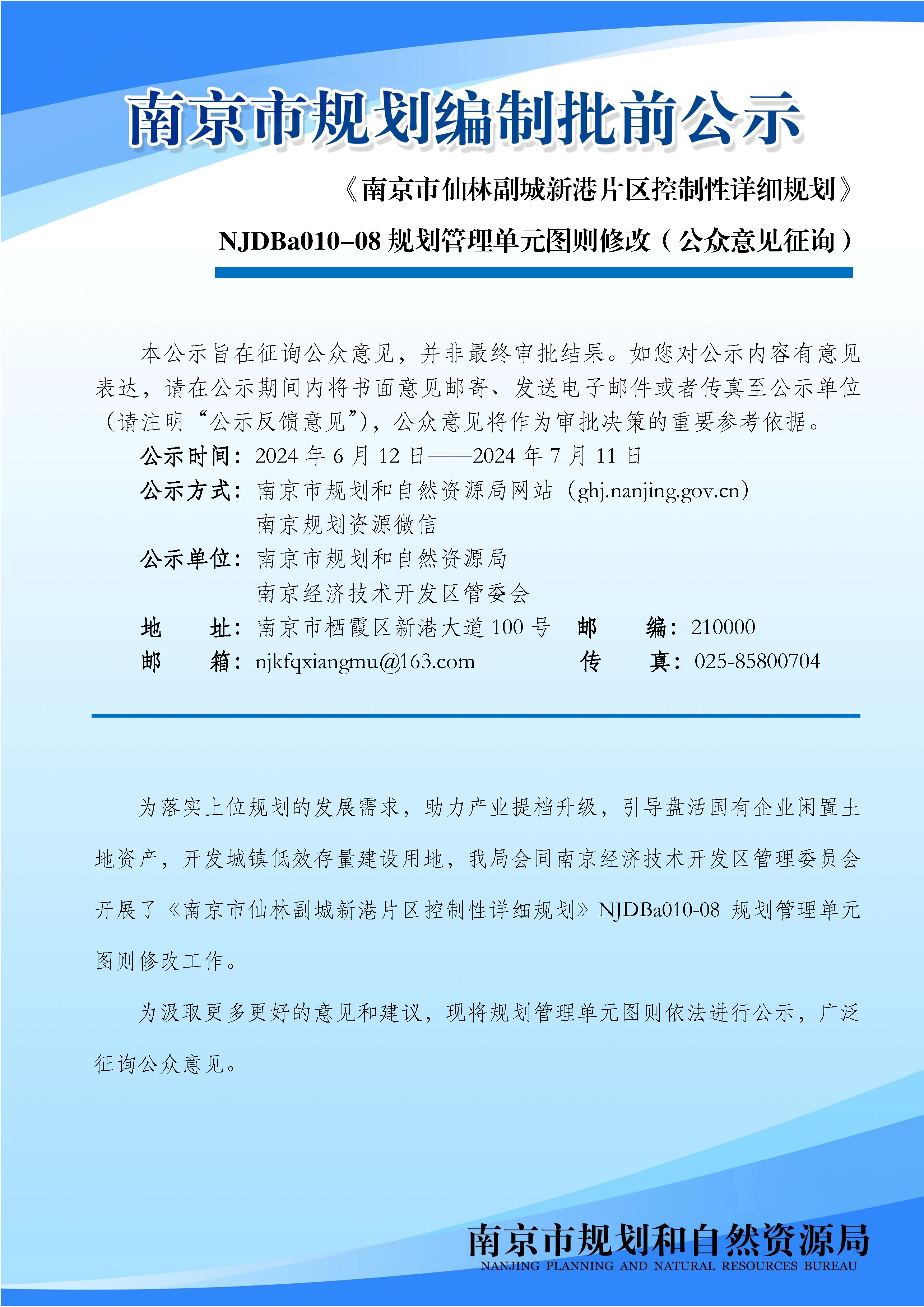 《南京市仙林副城新港片区控制性详细规划》NJDBa010-08规划管理单元图则修改(公众意见征询)