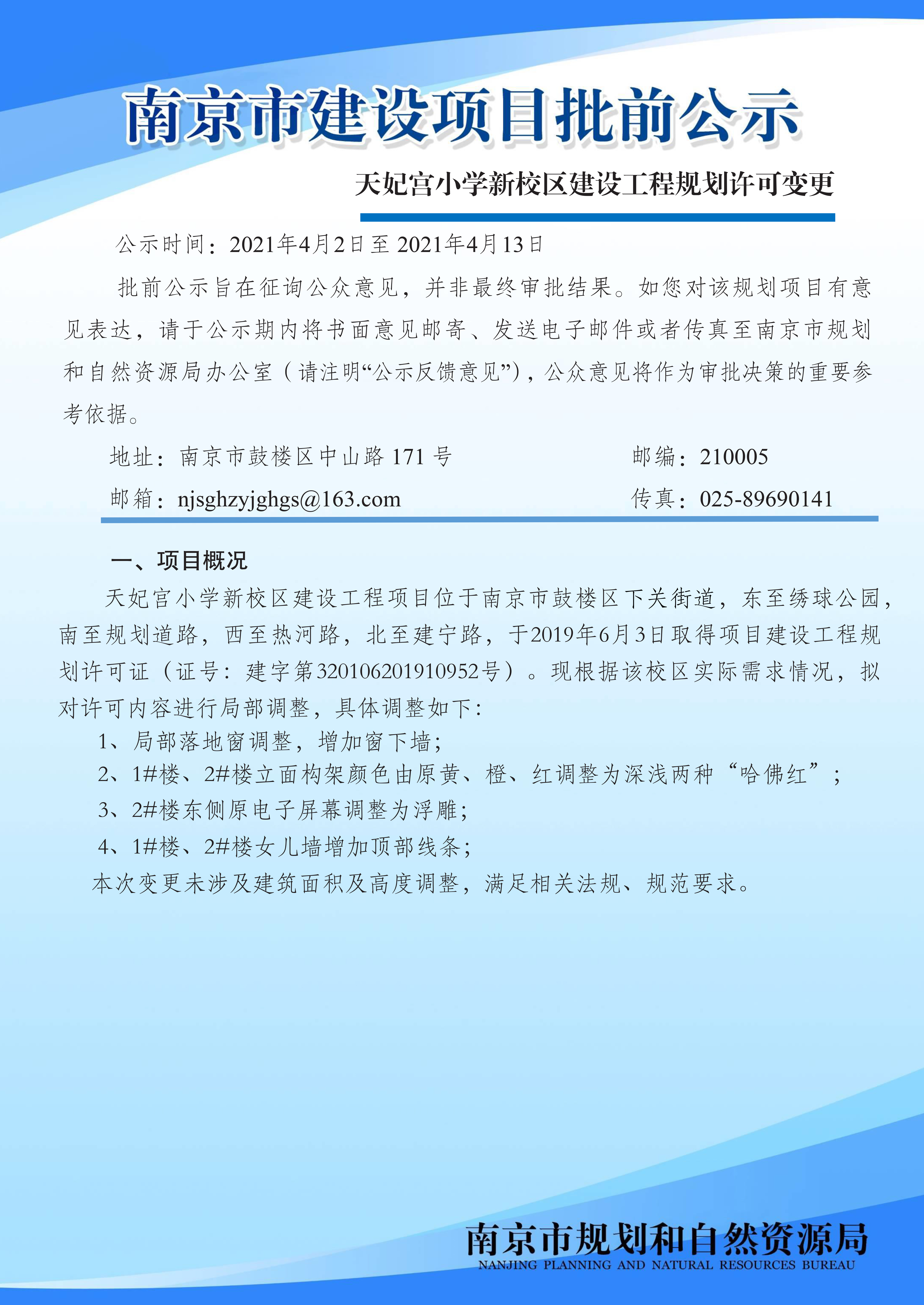 天妃宫小学新校区建设工程规划许可变更批前公示
