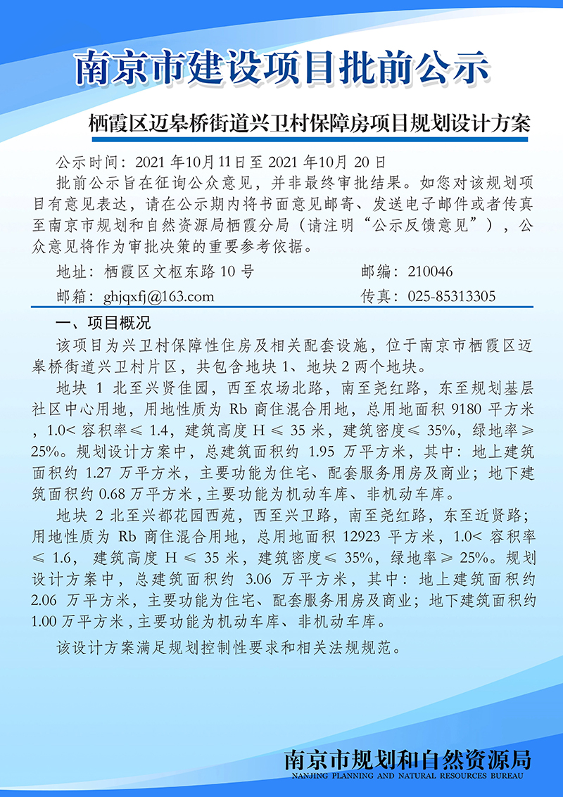 栖霞区迈皋桥街道兴卫村保障房项目规划设计方案批前公示