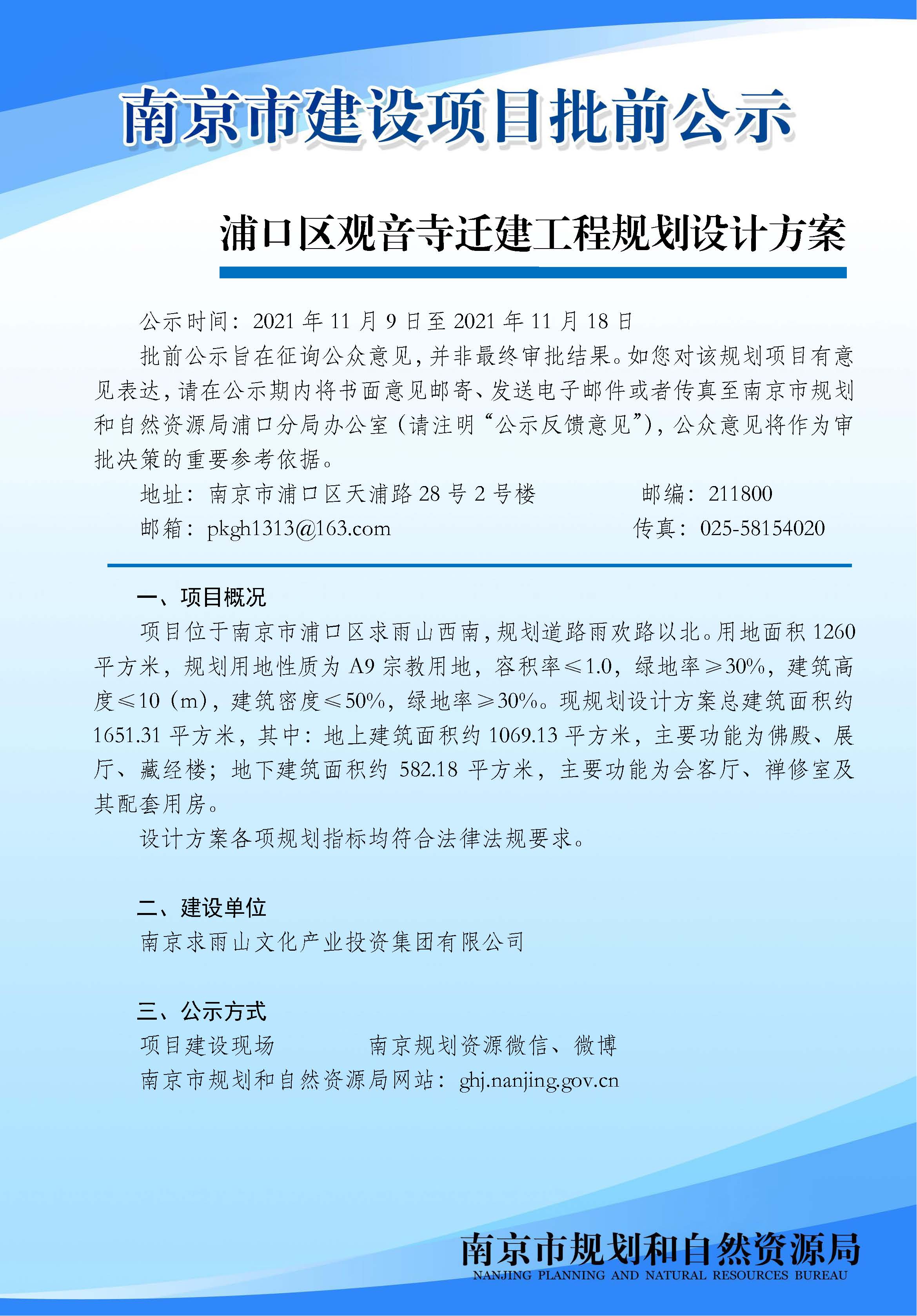浦口区观音寺迁建工程设计方案批前公示