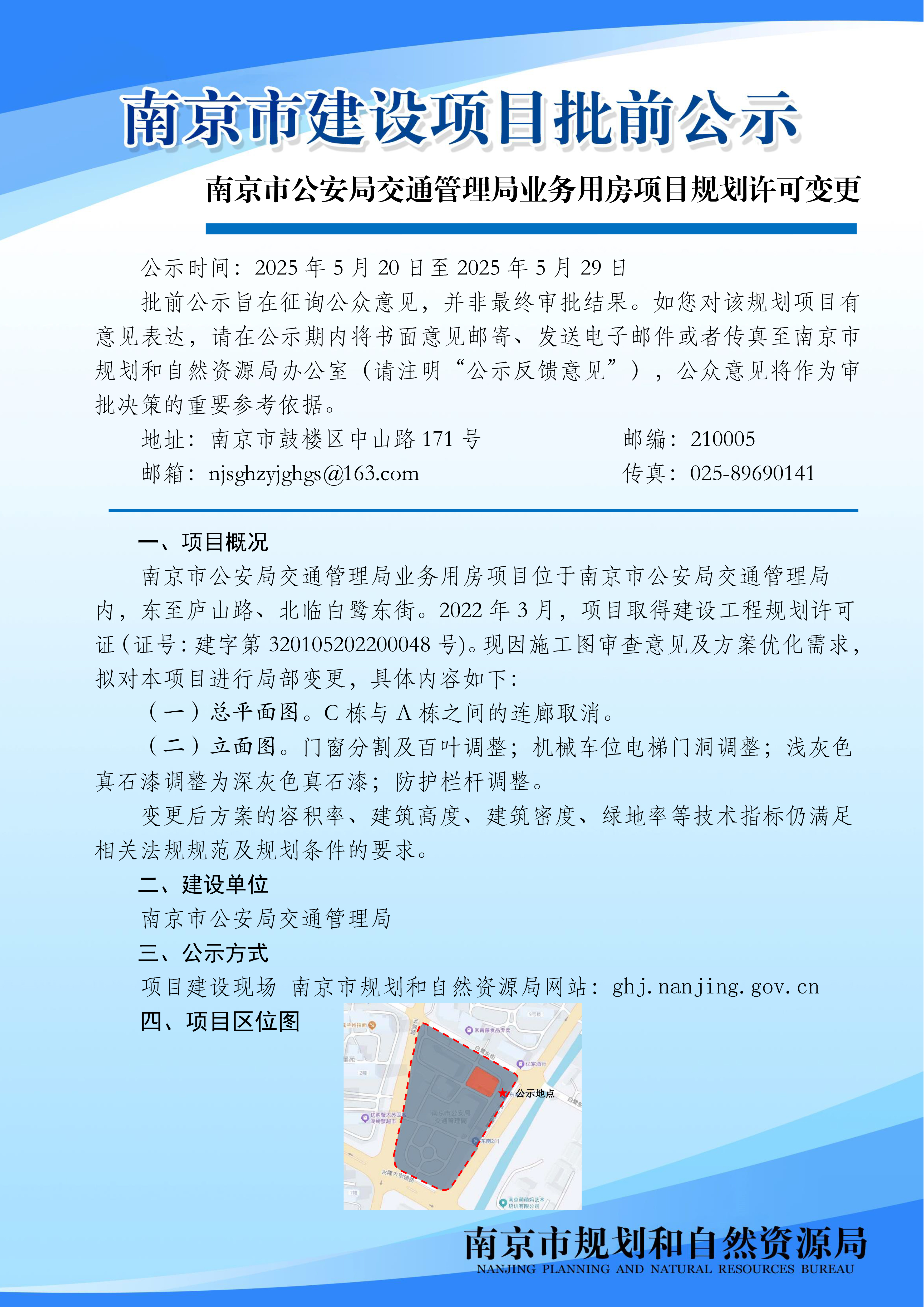 南京市公安局交通管理局业务用房项目规划许可变更批前公示