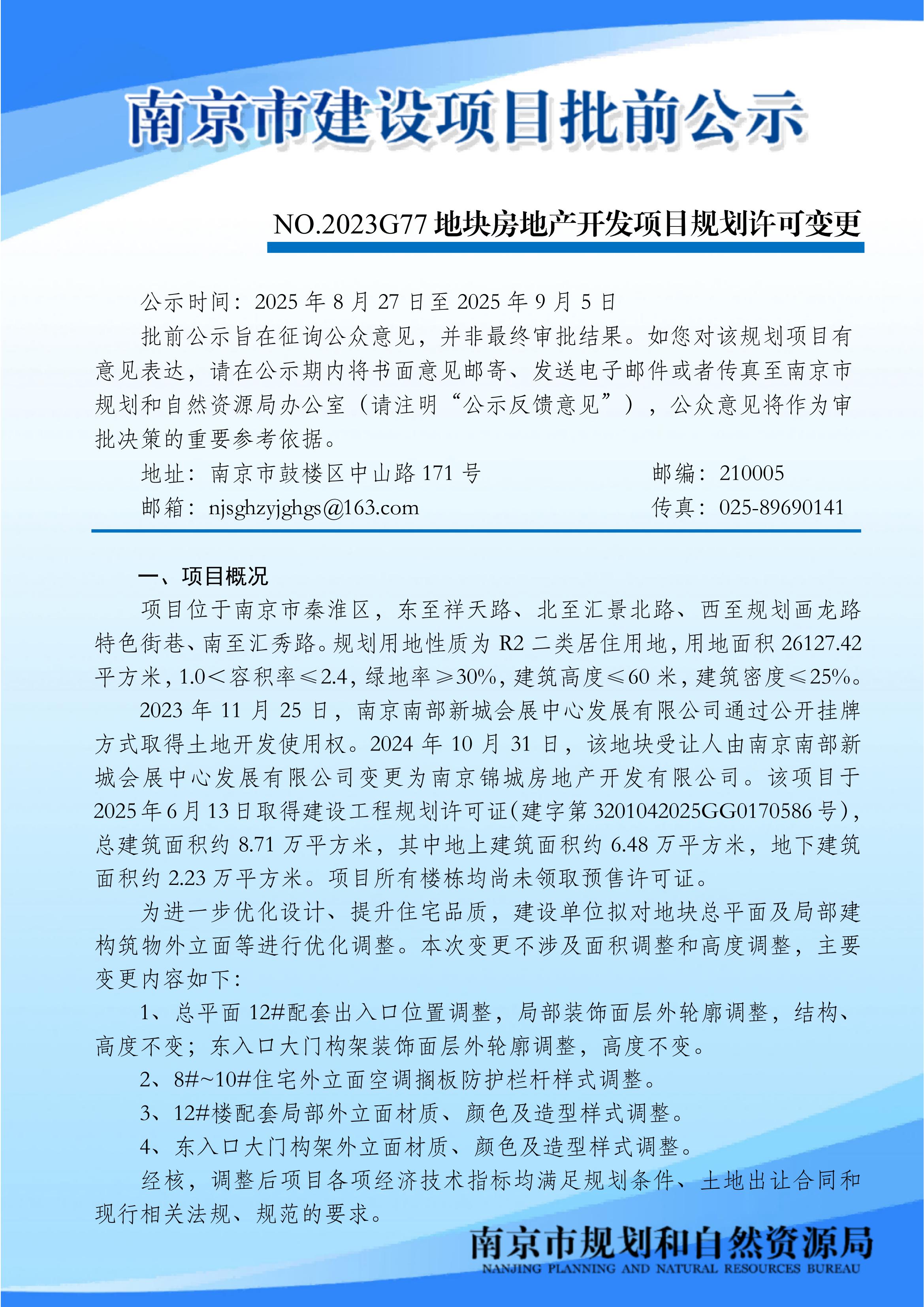 NO.2023G77地块房地产开发项目规划许可变更批前公示