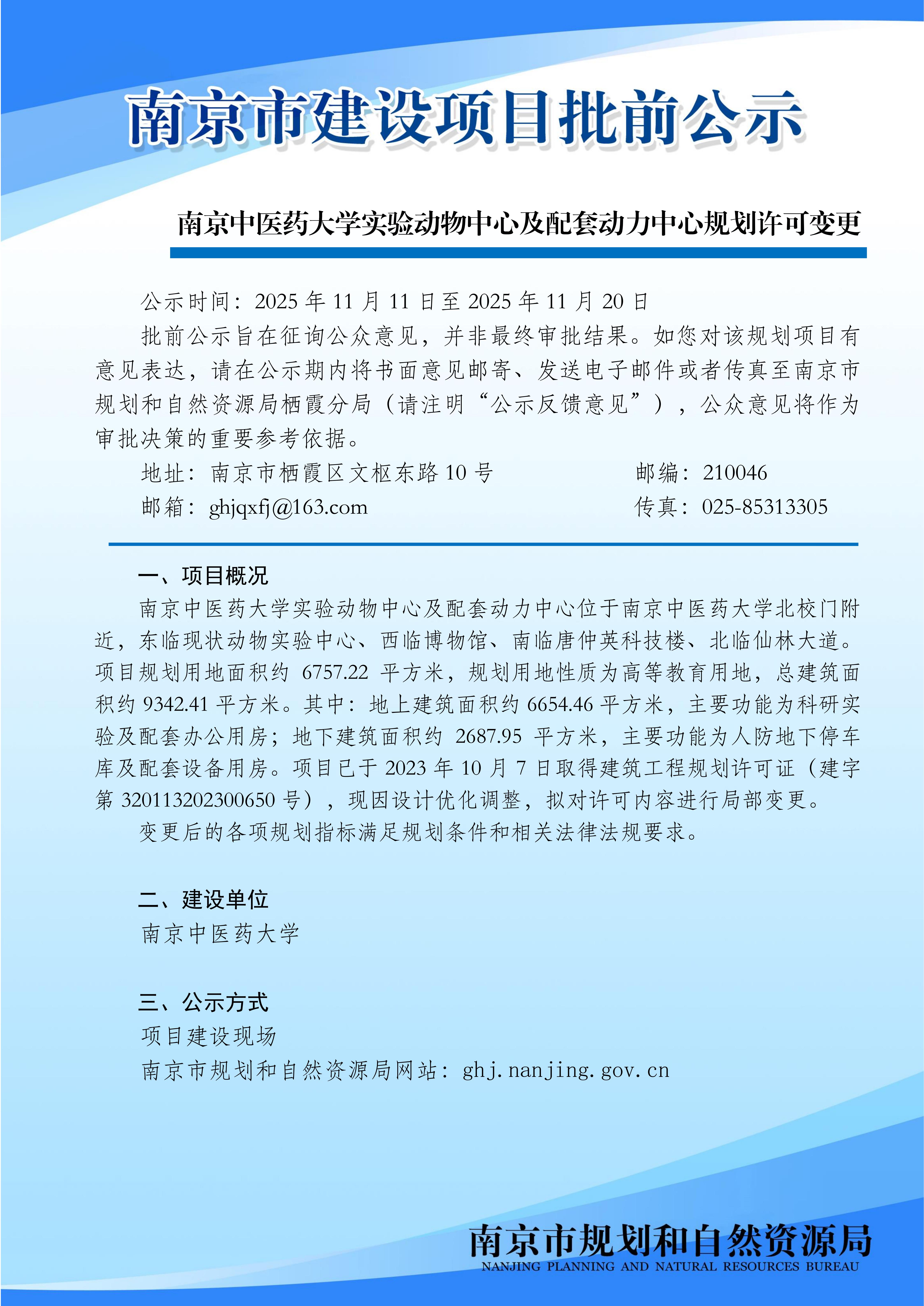 南京中医药大学实验动物中心及配套动力中心规划许可变更批前公示