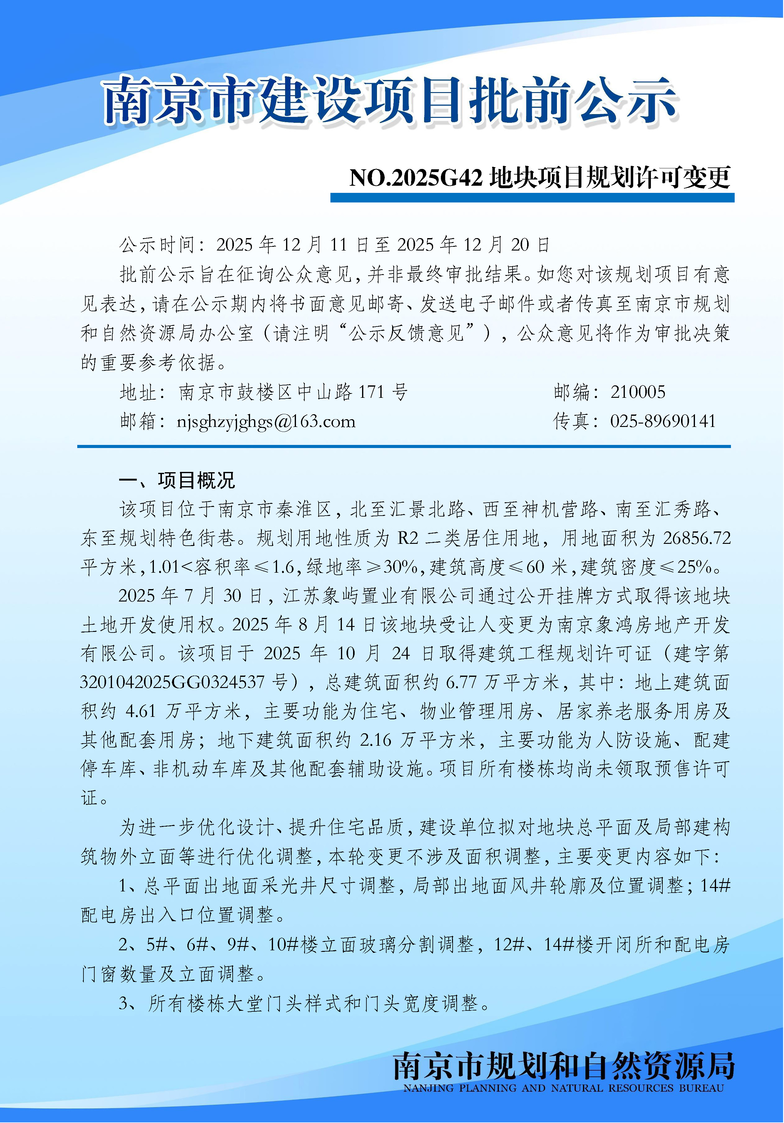 NO.2025G42地块项目规划许可变更批前公示