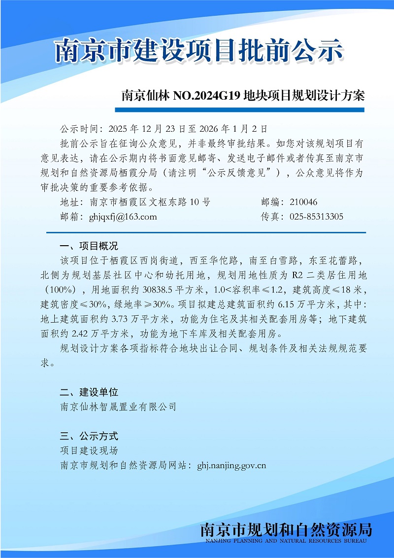 南京仙林NO.2024G19地块项目规划设计方案批前公示
