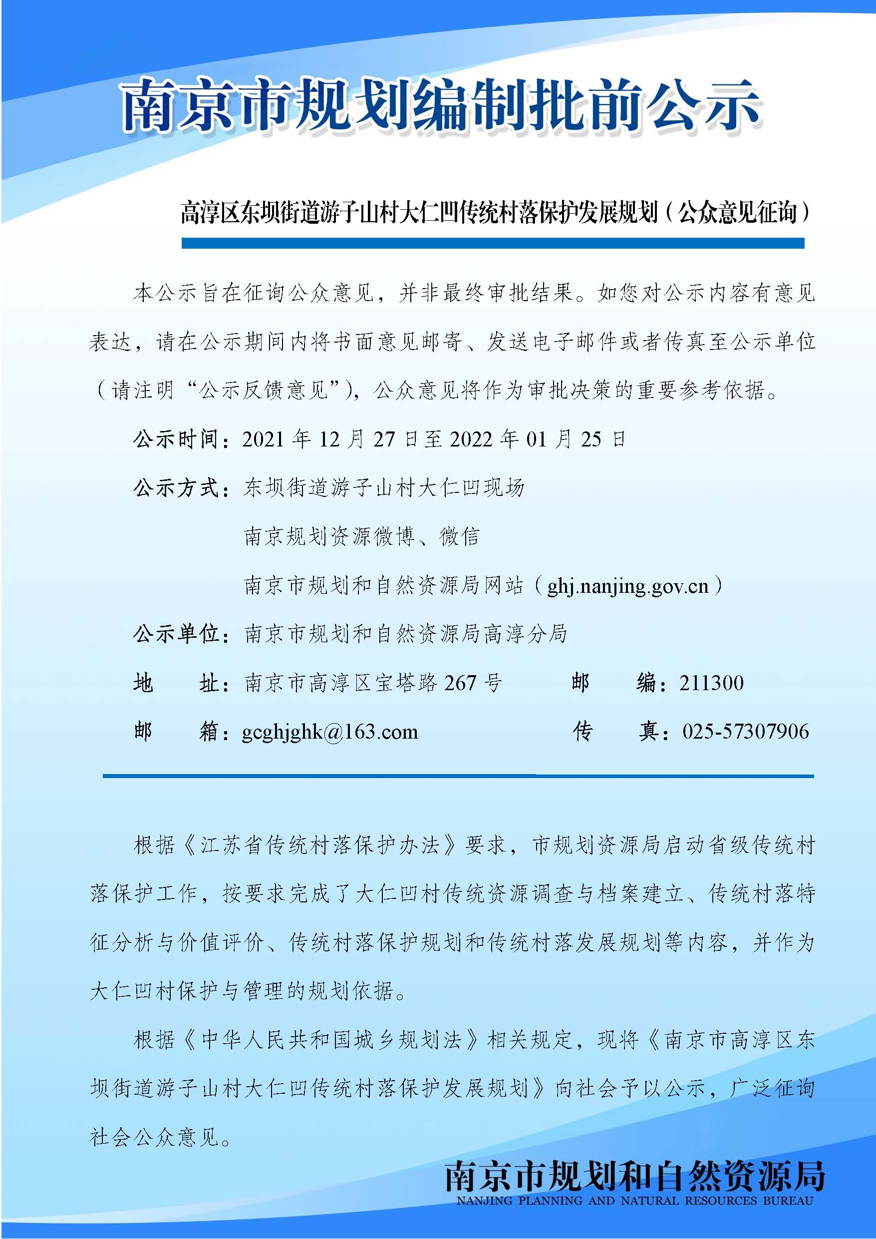 《高淳区东坝街道游子山村大仁凹传统村落保护发展规划》(公众意见征询)