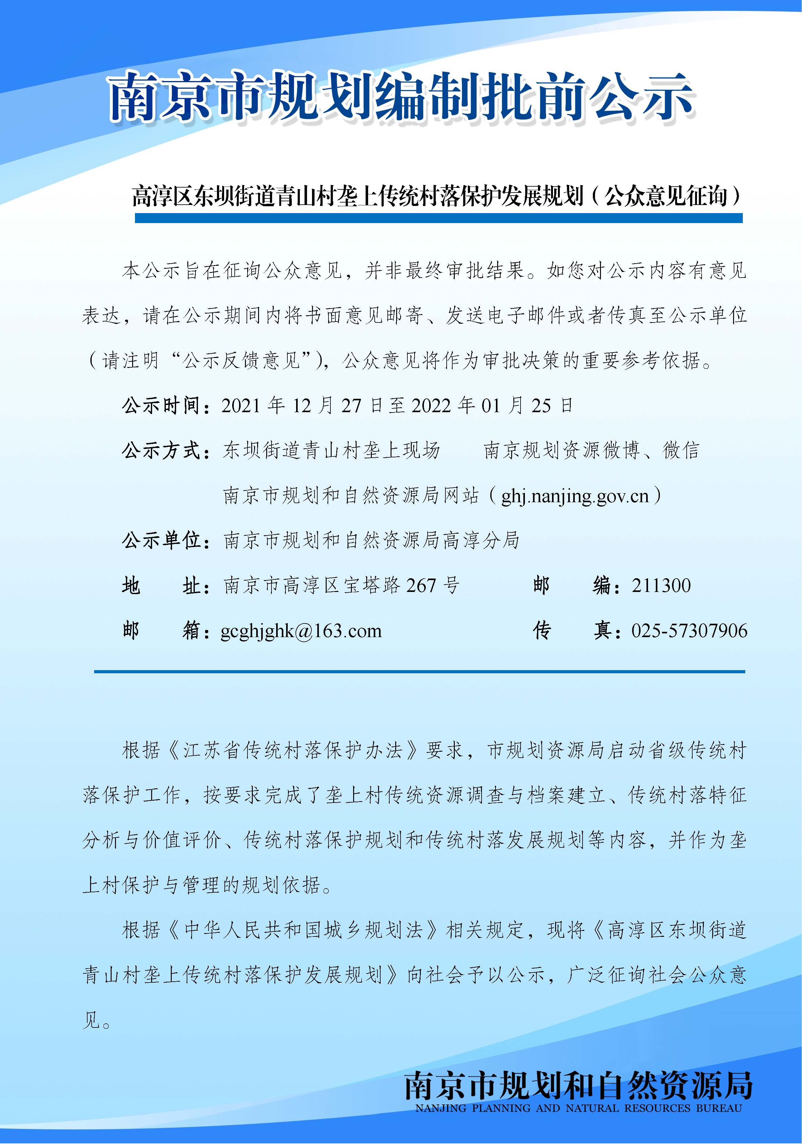 《高淳区东坝街道青山村垄上传统村落保护发展规划》(公众意见征询)
