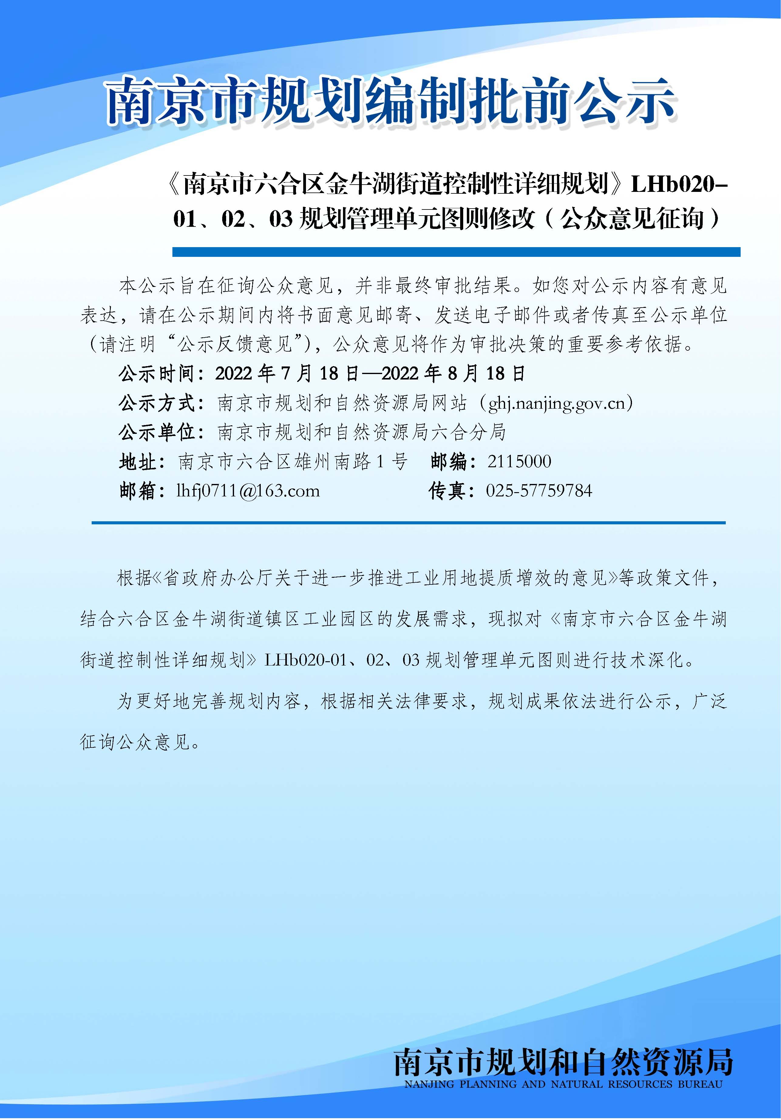 《南京市六合区金牛湖街道控制性详细规划》LHb020-01、02、03规划管理单元图则修改(公众意见征询)