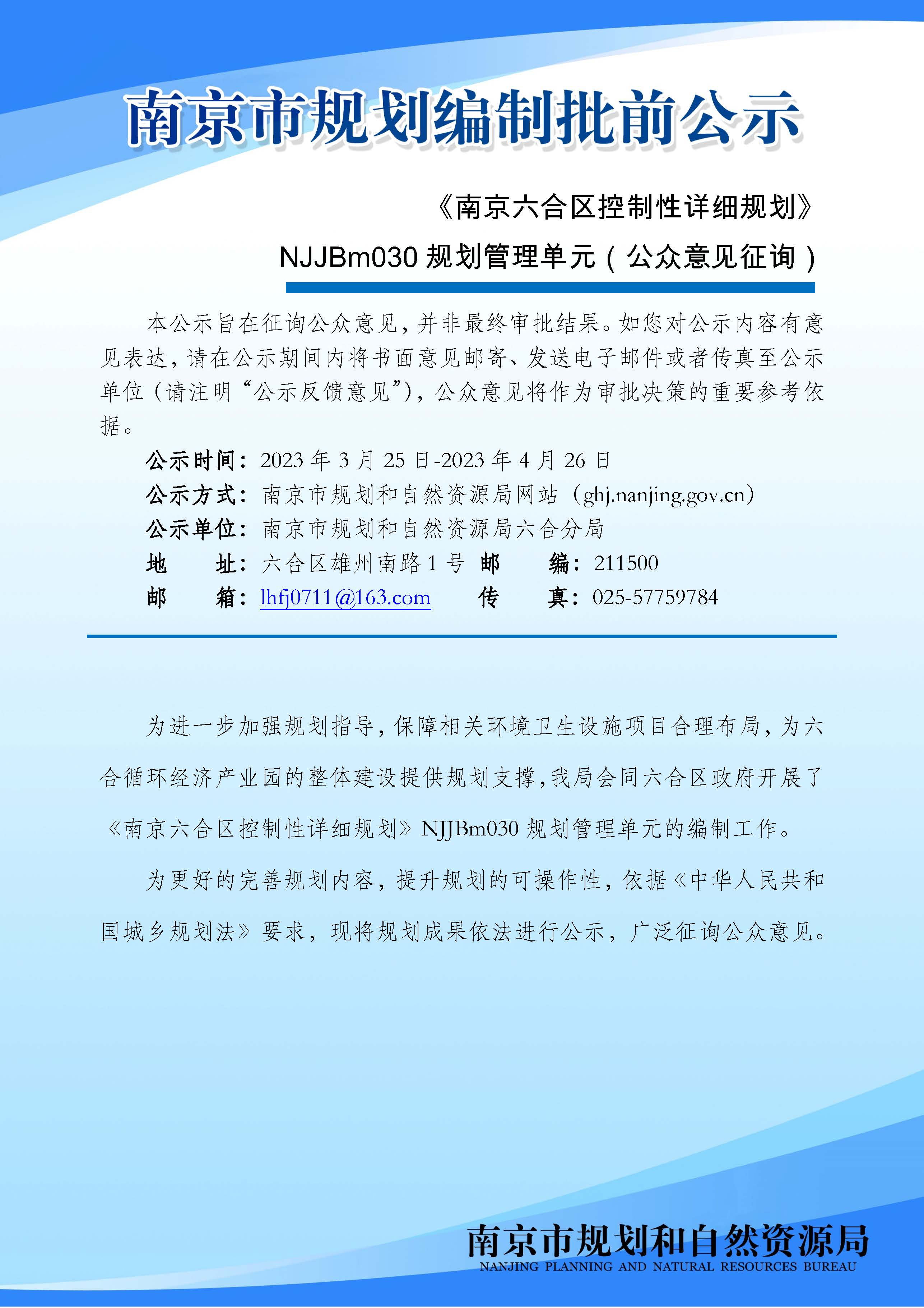 《南京六合区控制性详细规划》NJJBm030规划管理单元 (公众意见征询)