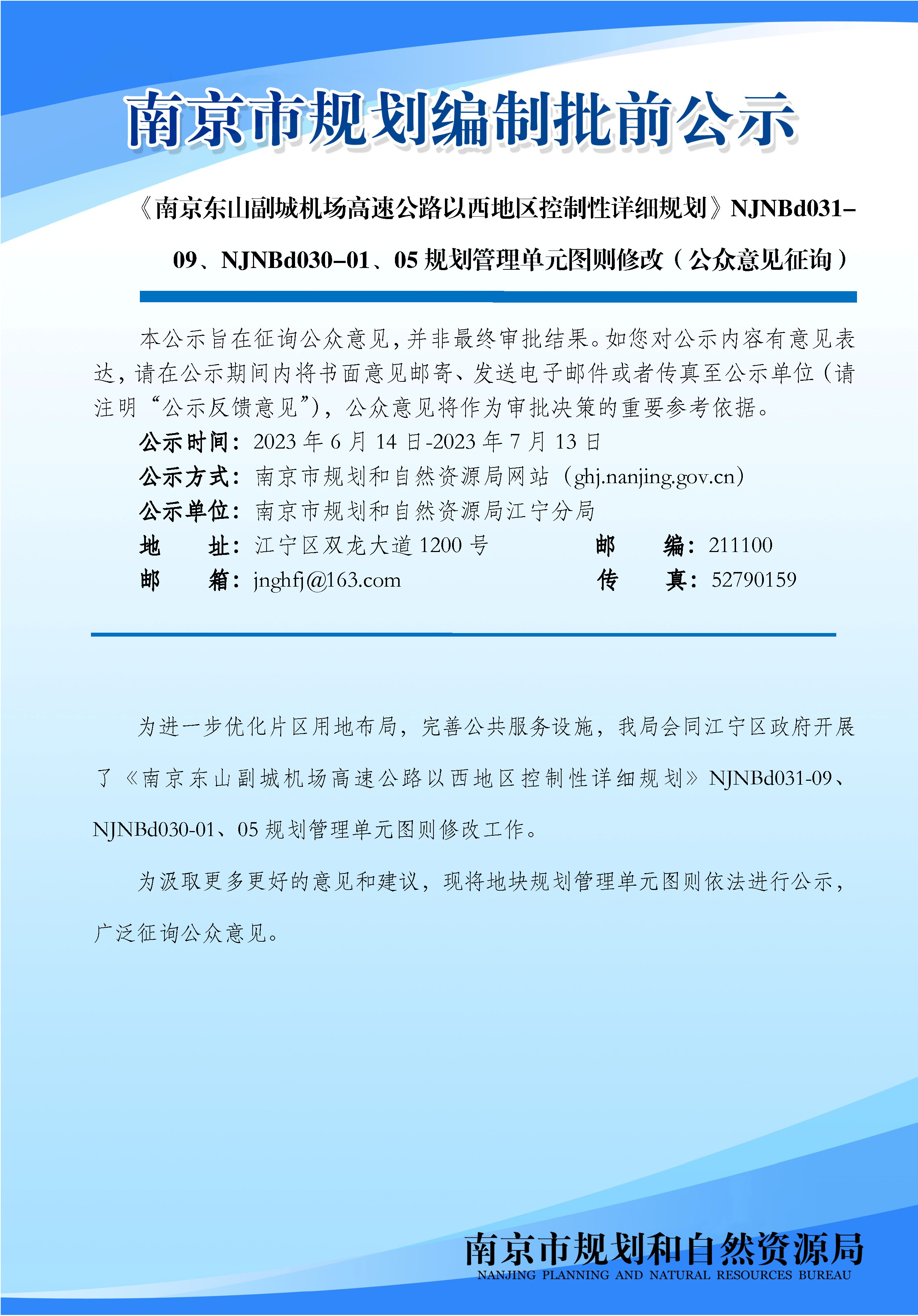 《南京东山副城机场高速公路以西地区控制性详细规划》NJNBd031-09、NJNBd030-01、05规划管理单元图则修改(公众意见征询)