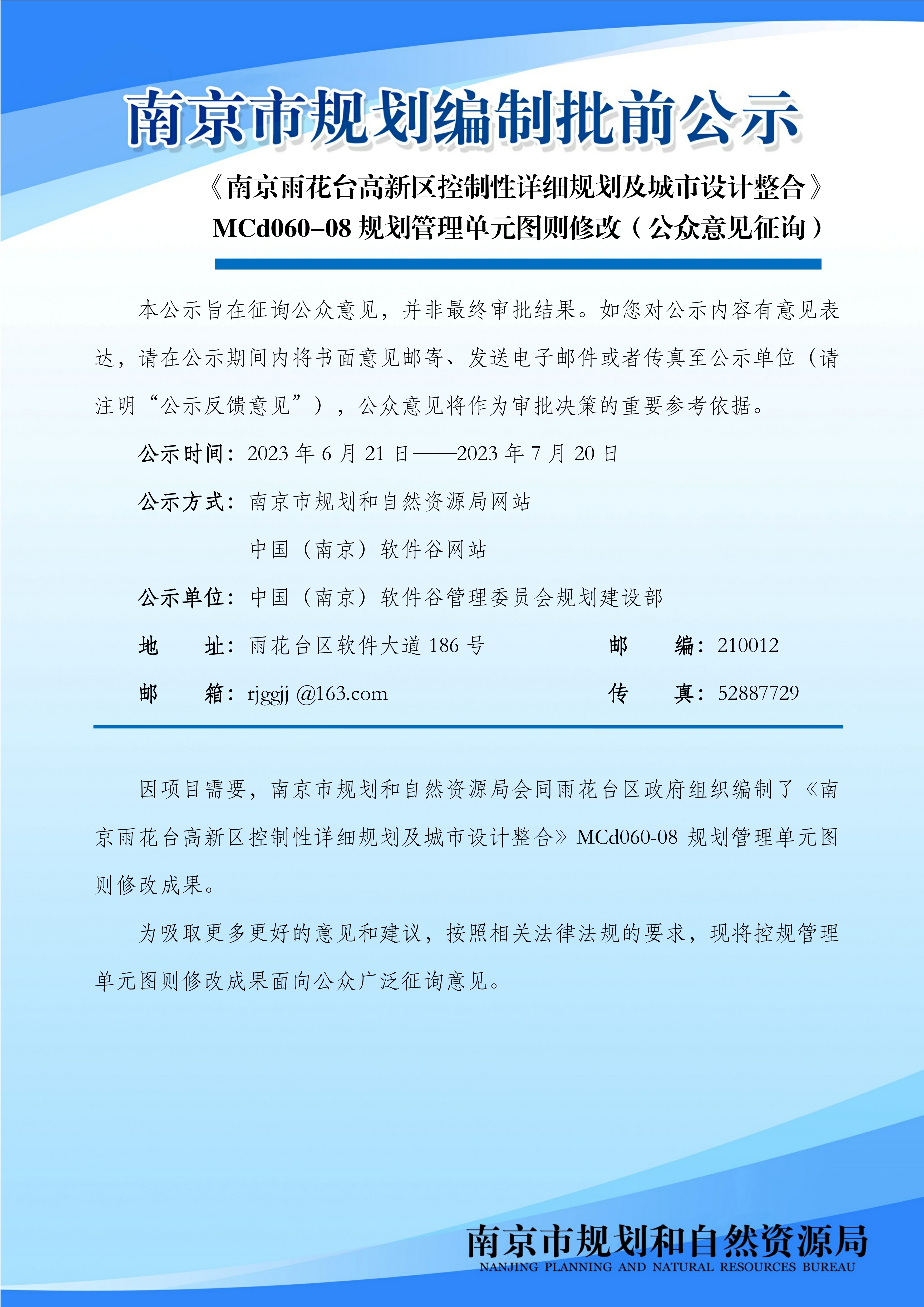 《南京雨花台高新区控制性详细规划及城市设计整合》MCd060-08规划管理单元图则修改(公众意见征询)