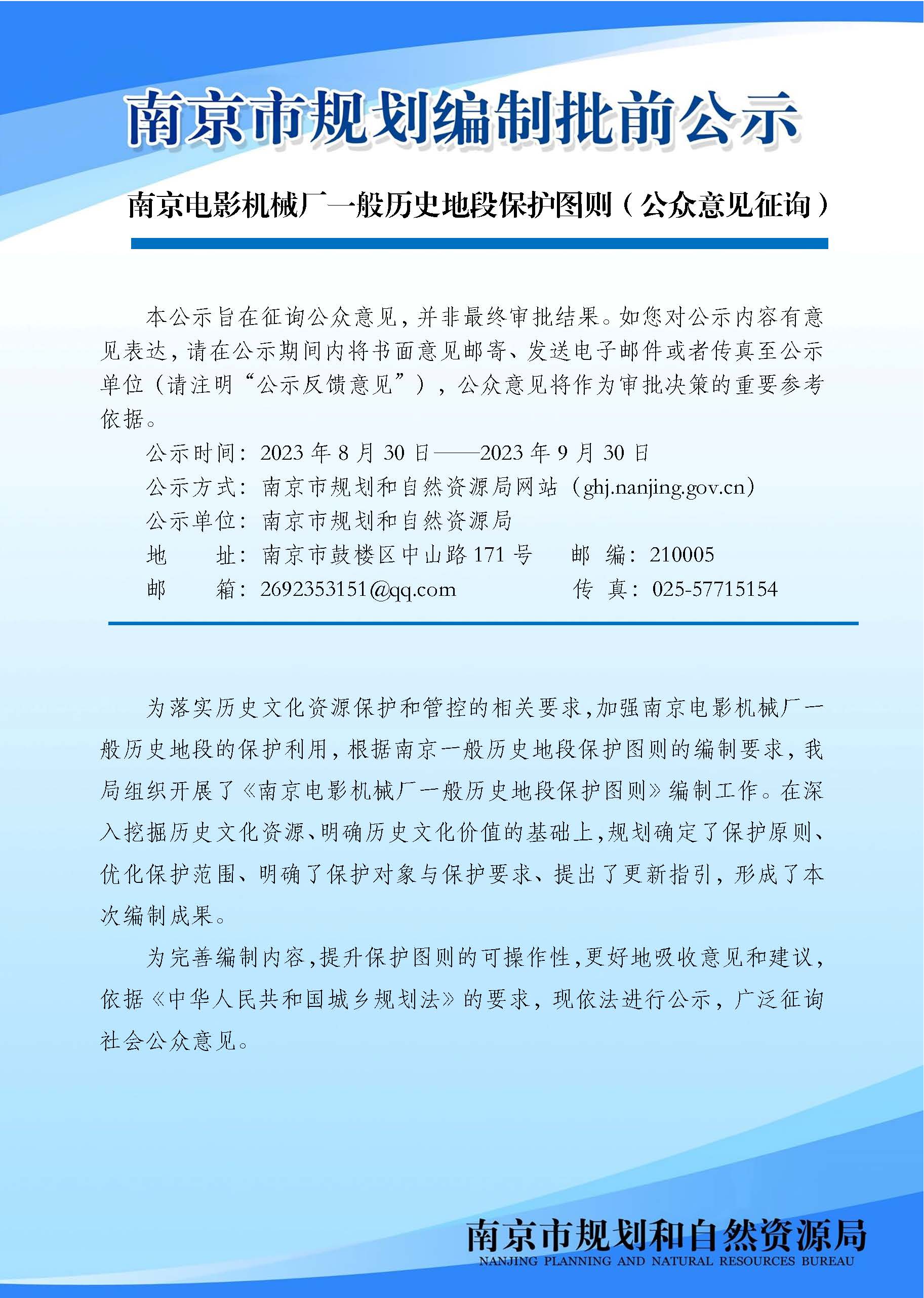 南京电影机械厂一般历史地段保护图则(公众意见征询)