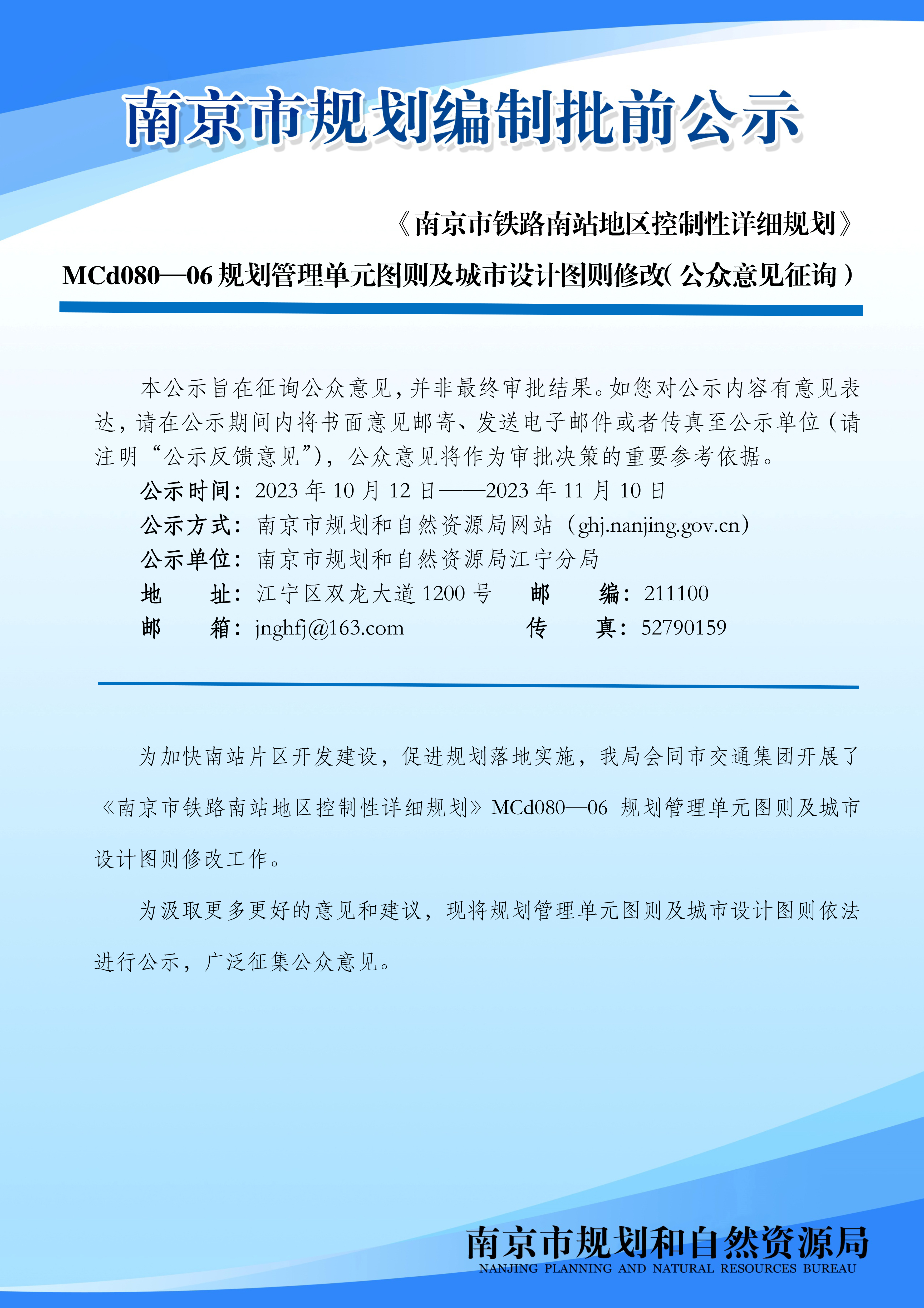 《南京市铁路南站地区控制性详细规划》MCd080—06规划管理单元图则及城市设计图则修改(公众意见征询)