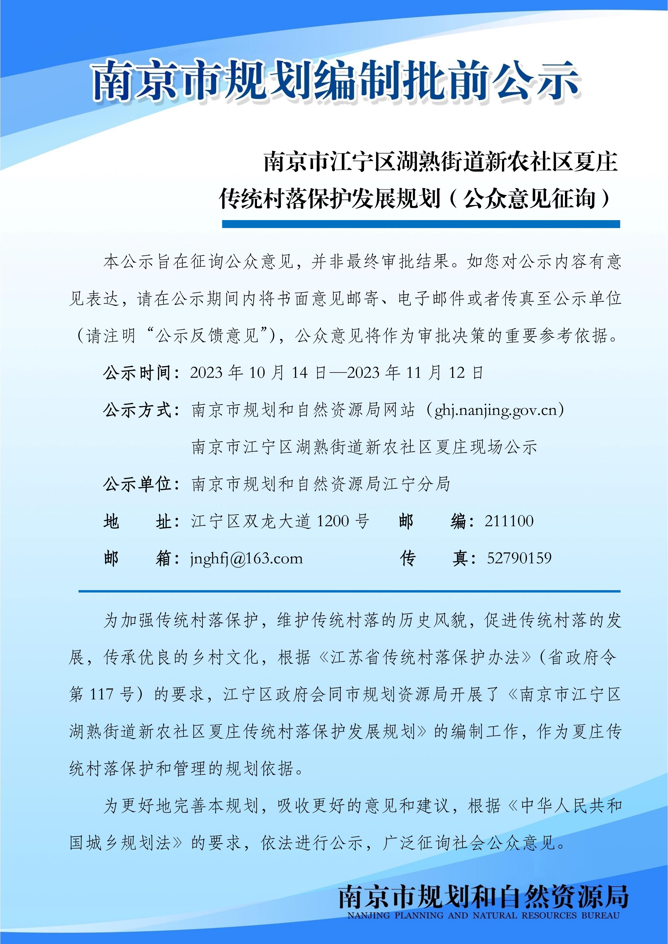 南京市江宁区湖熟街道新农社区夏庄传统村落保护发展规划(公众意见征询)
