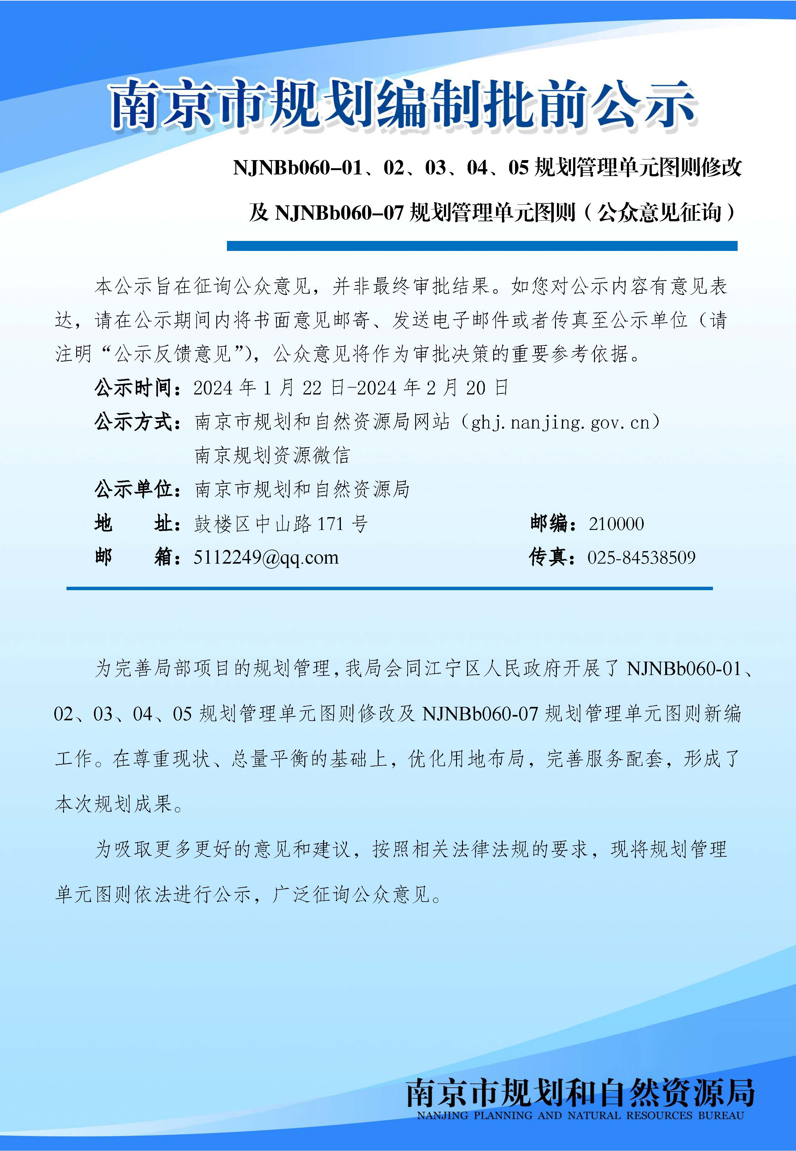 NJNBb060-01、02、03、04、05规划管理单元图则修改及NJNBb060-07规划管理单元图则(公众意见征询)