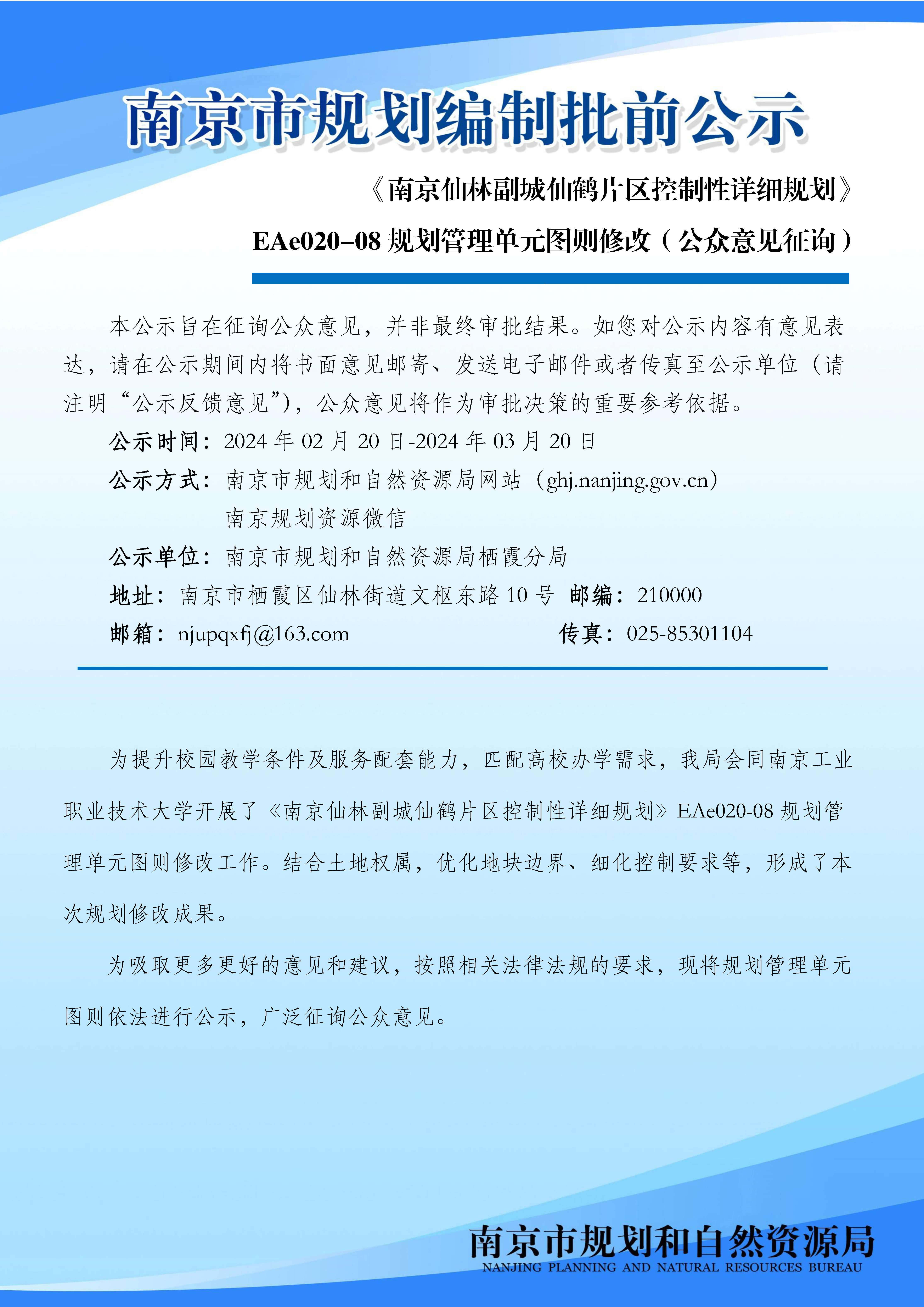 《南京仙林副城仙鹤片区控制性详细规划》 EAe020-08规划管理单元图则修改(公众意见征询)