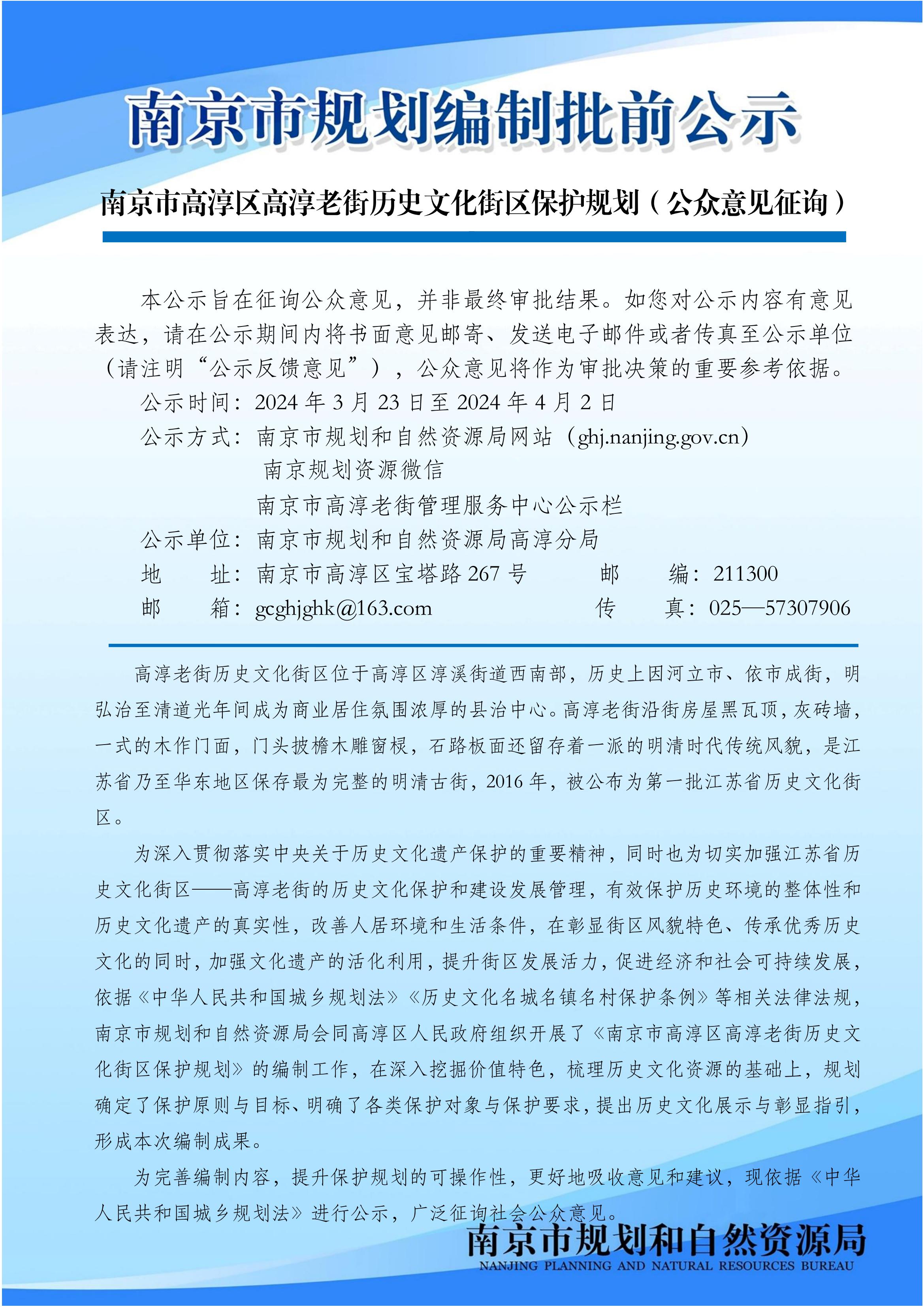 《南京市高淳区高淳老街历史文化街区保护规划》(公众意见征询)