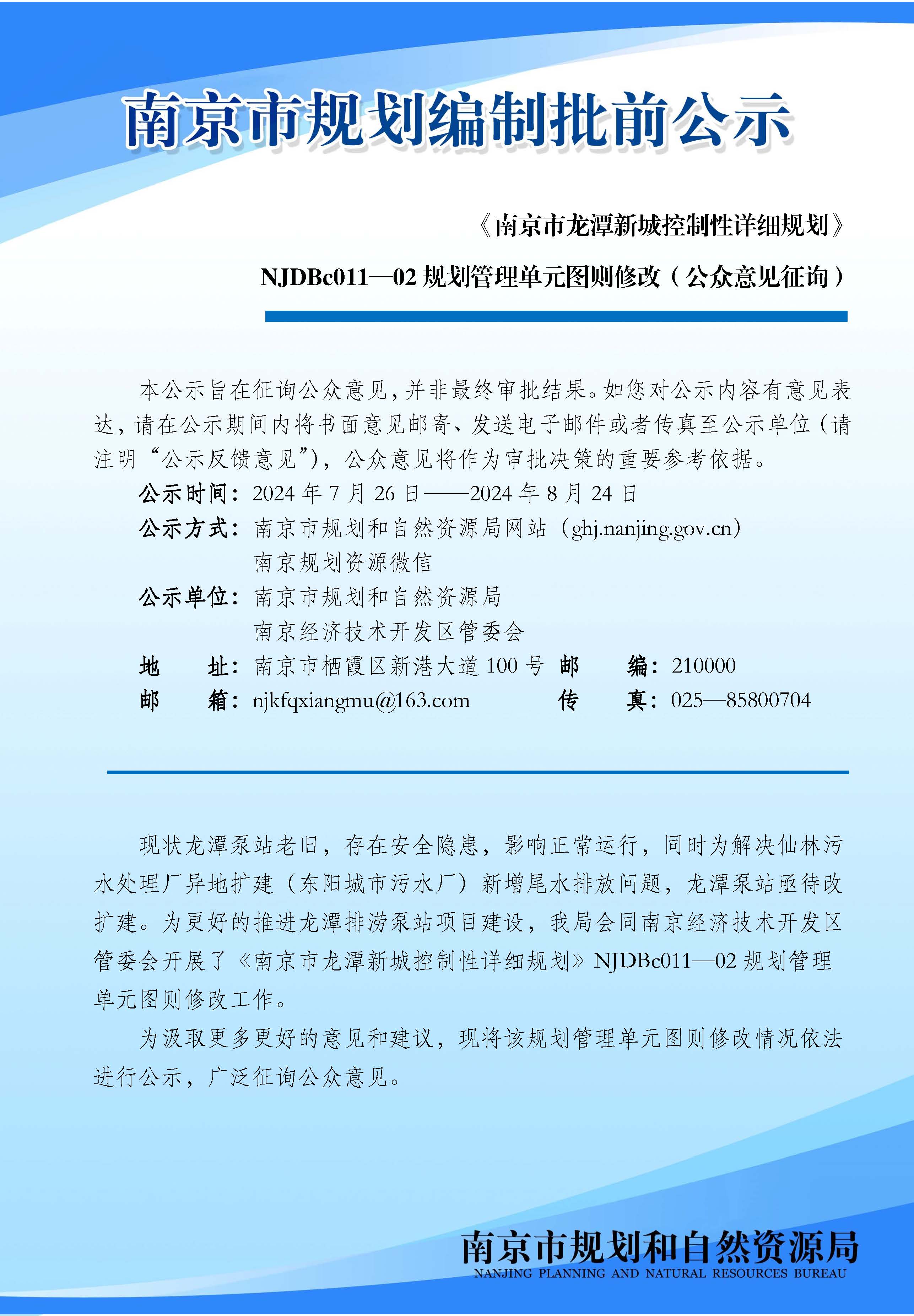 《南京市龙潭新城控制性详细规划》NJDBc011-02规划管理单元图则修改(公众意见征询)