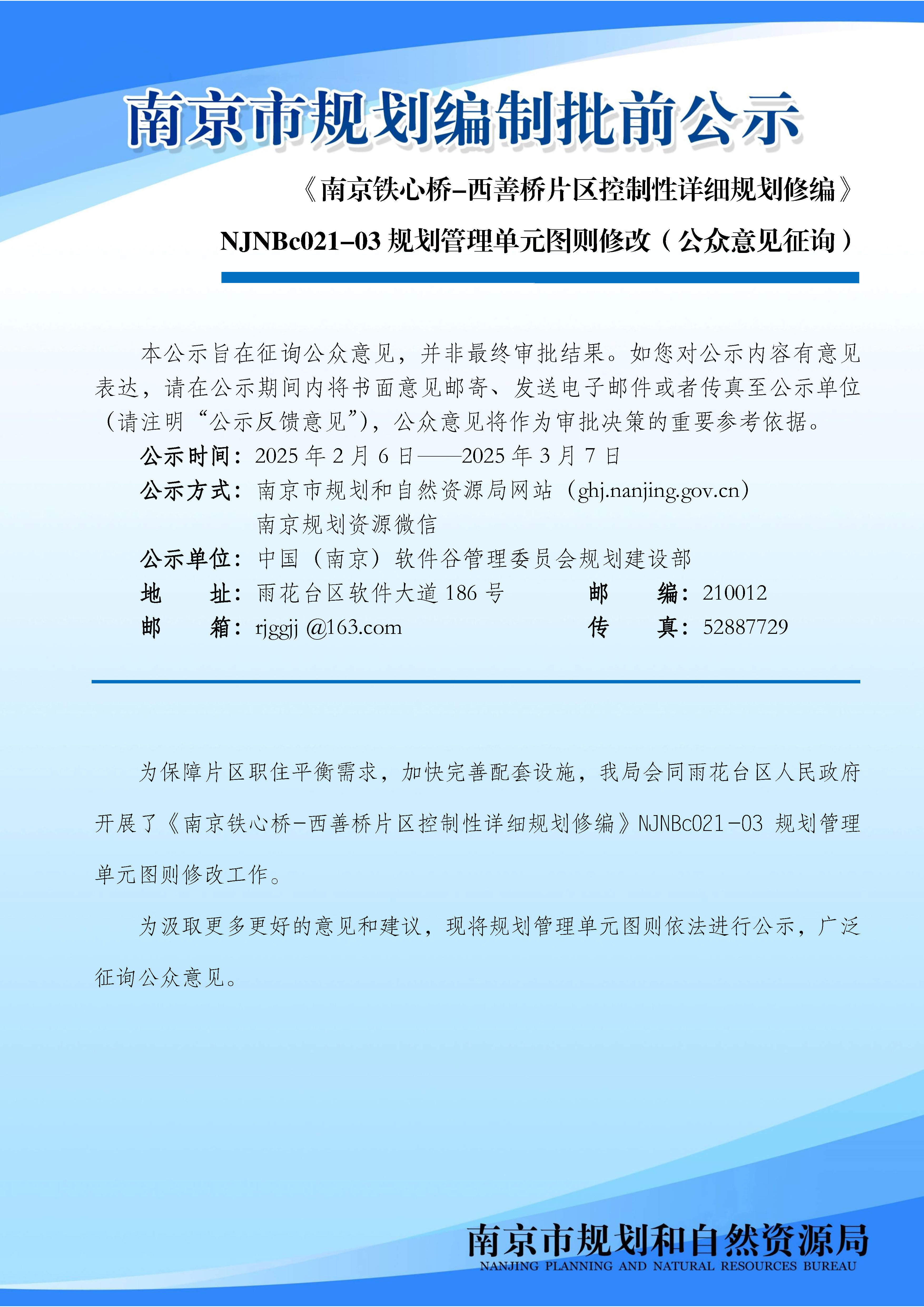 《南京铁心桥-西善桥片区控制性详细规划修编》NJNBc021-03规划管理单元图则修改(公众意见征询)