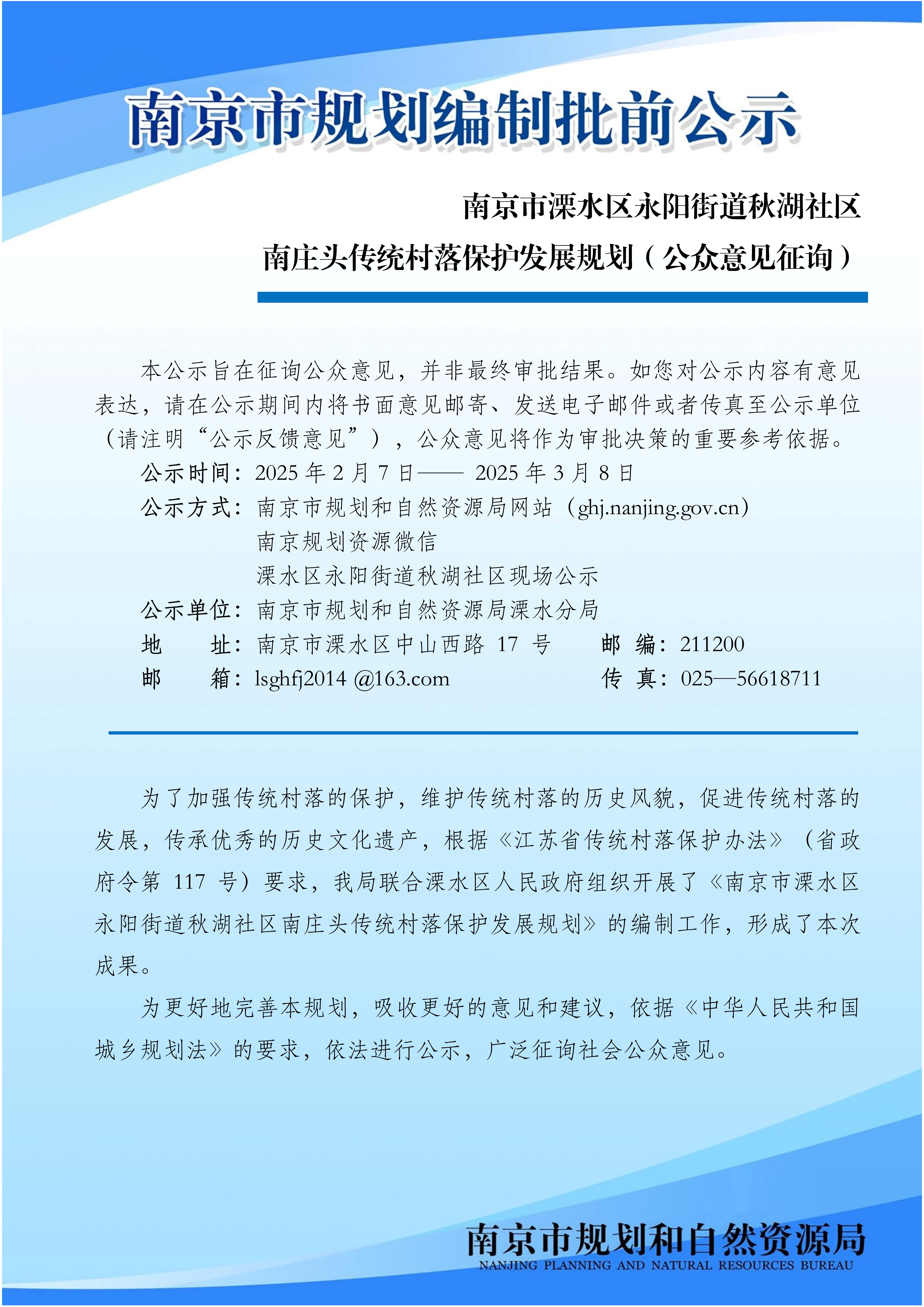 南京市溧水区永阳街道秋湖社区南庄头传统村落保护发展规划(公众意见征询)