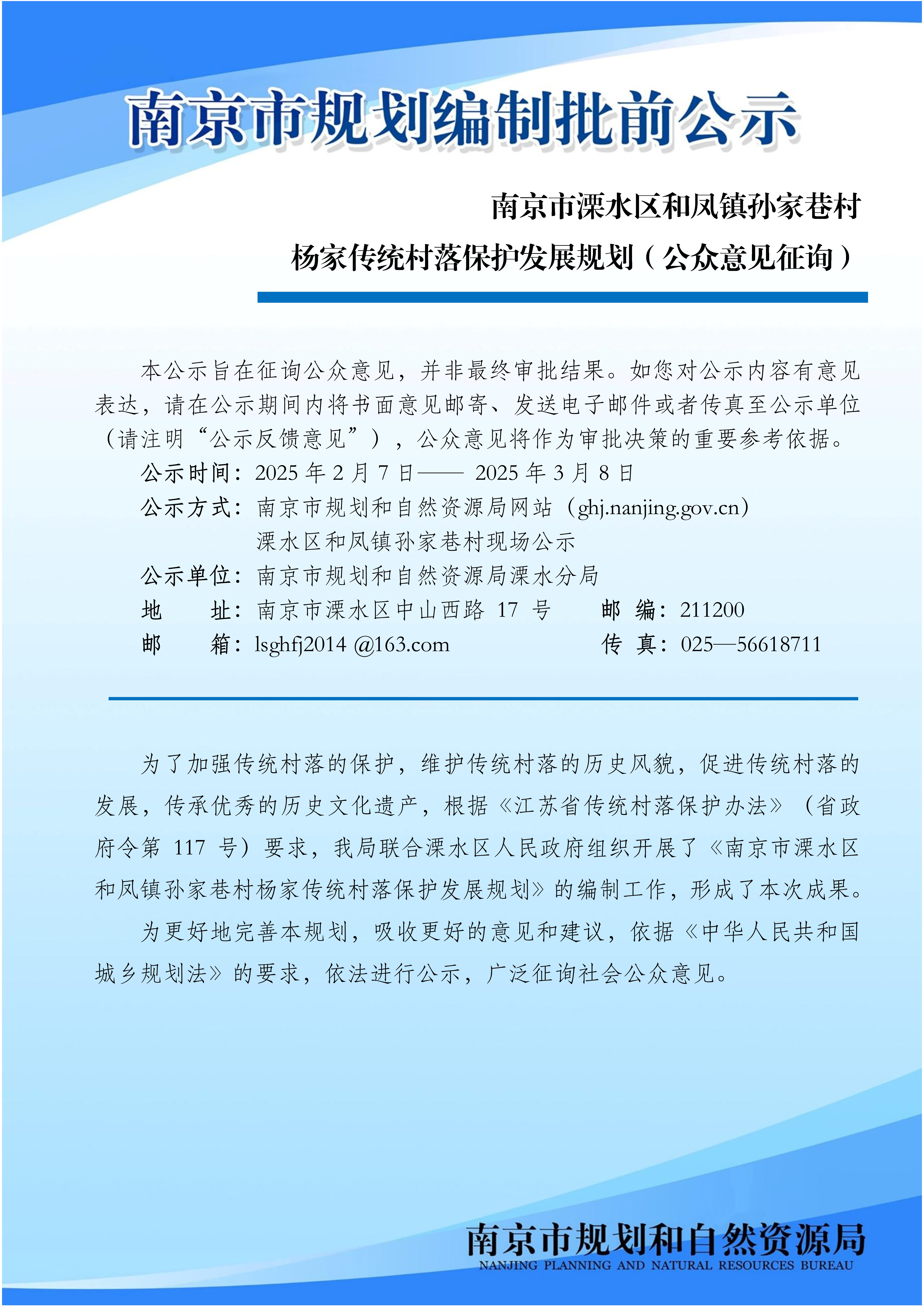 南京市溧水区和凤镇孙家巷村杨家传统村落保护发展规划(公众意见征询)