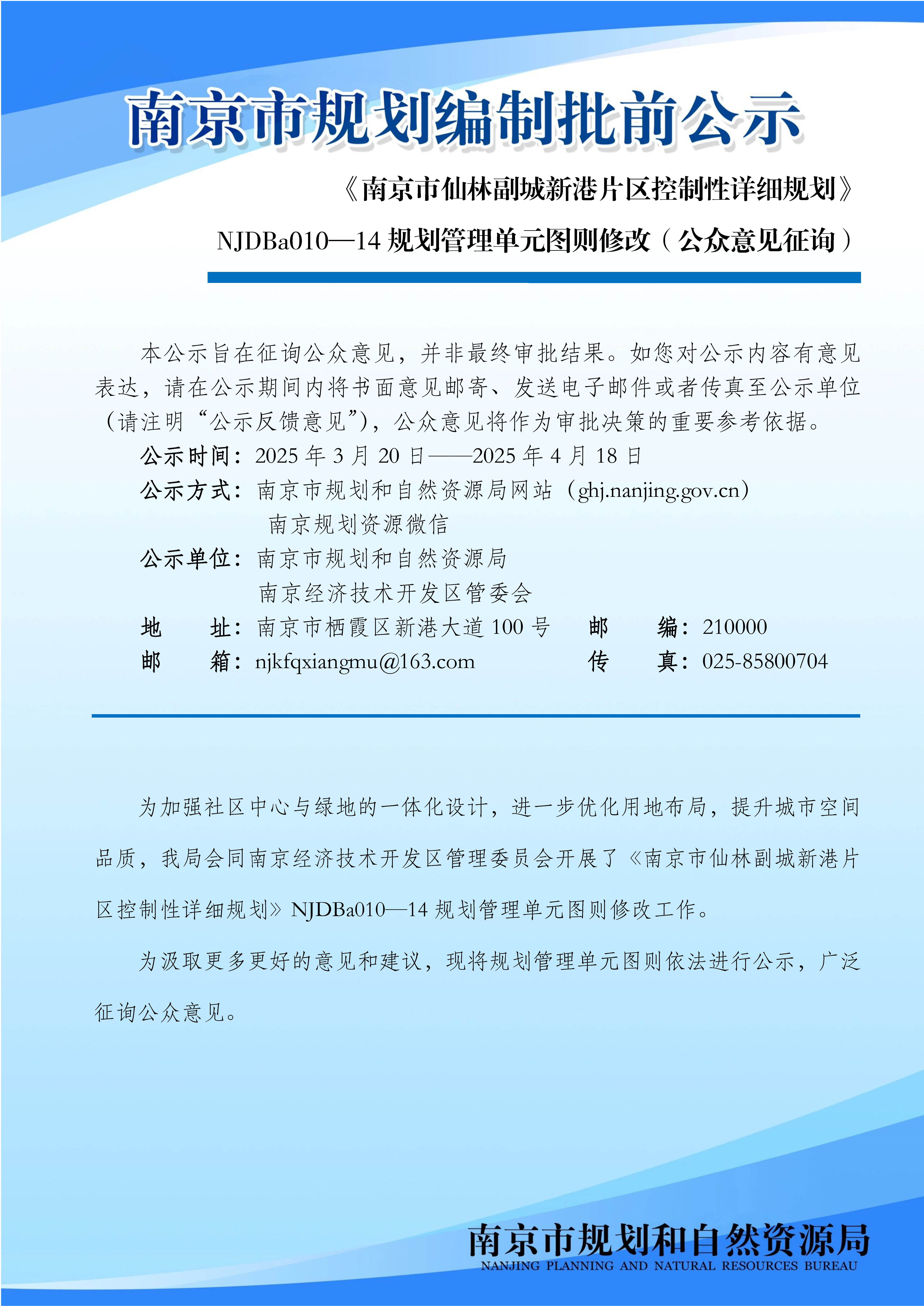 《南京市仙林副城新港片区控制性详细规划》NJDBa010-14规划管理单元图则修改(公众意见征询)