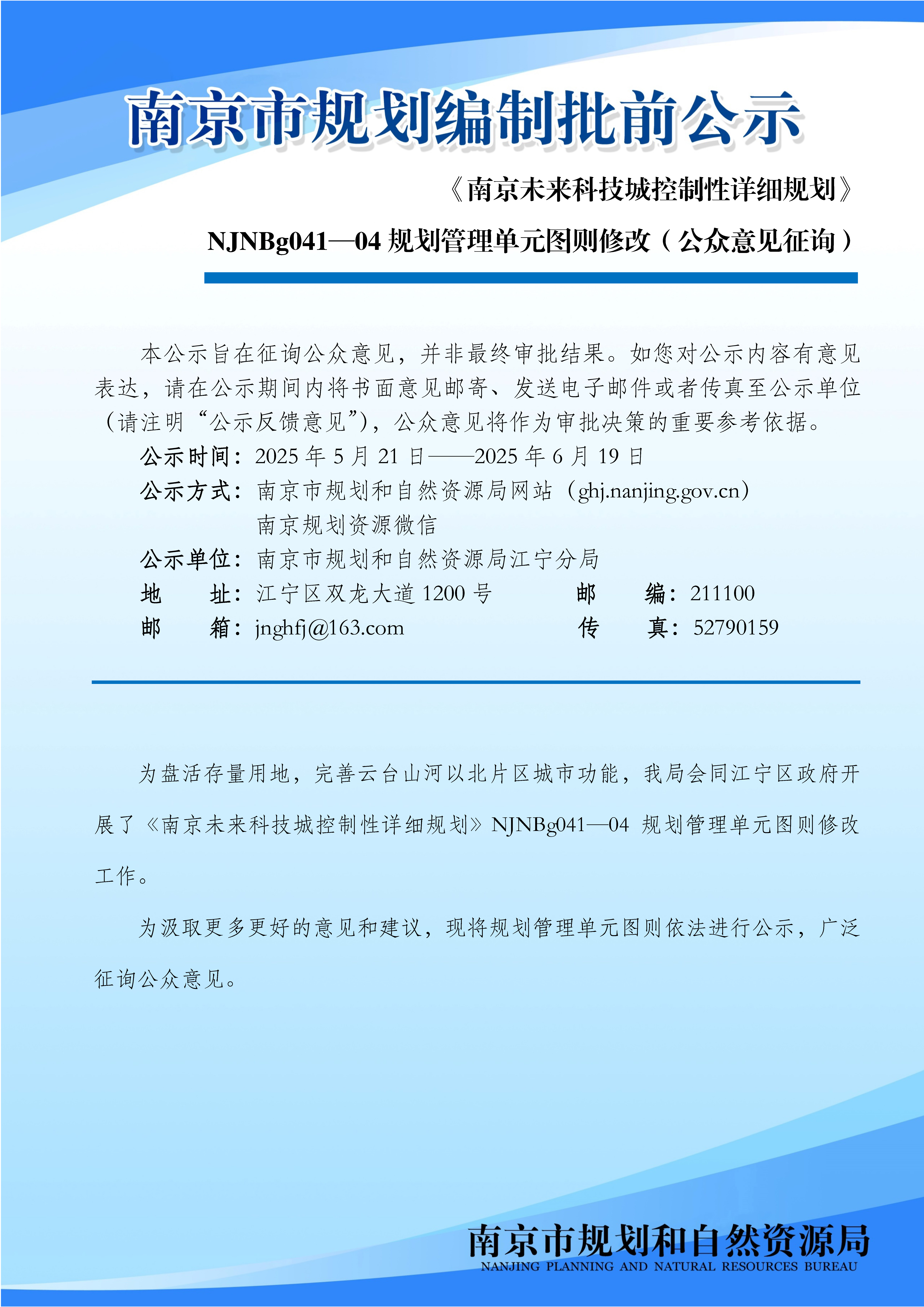 《南京未来科技城控制性详细规划》NJNBg041—04规划管理单元图则修改(公众意见征询)