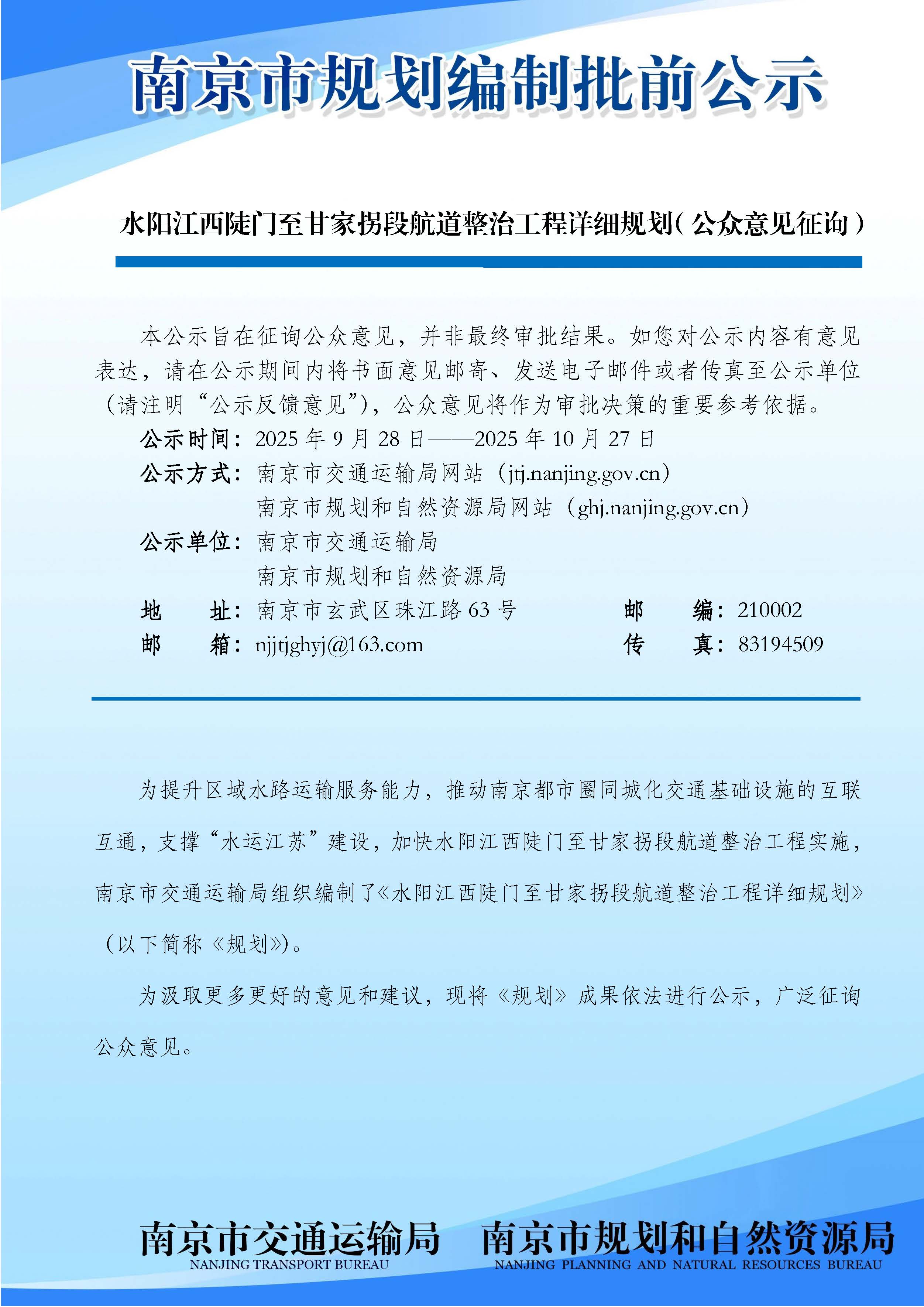 水阳江西陡门至甘家拐段航道整治工程详细规划(公众意见征询)