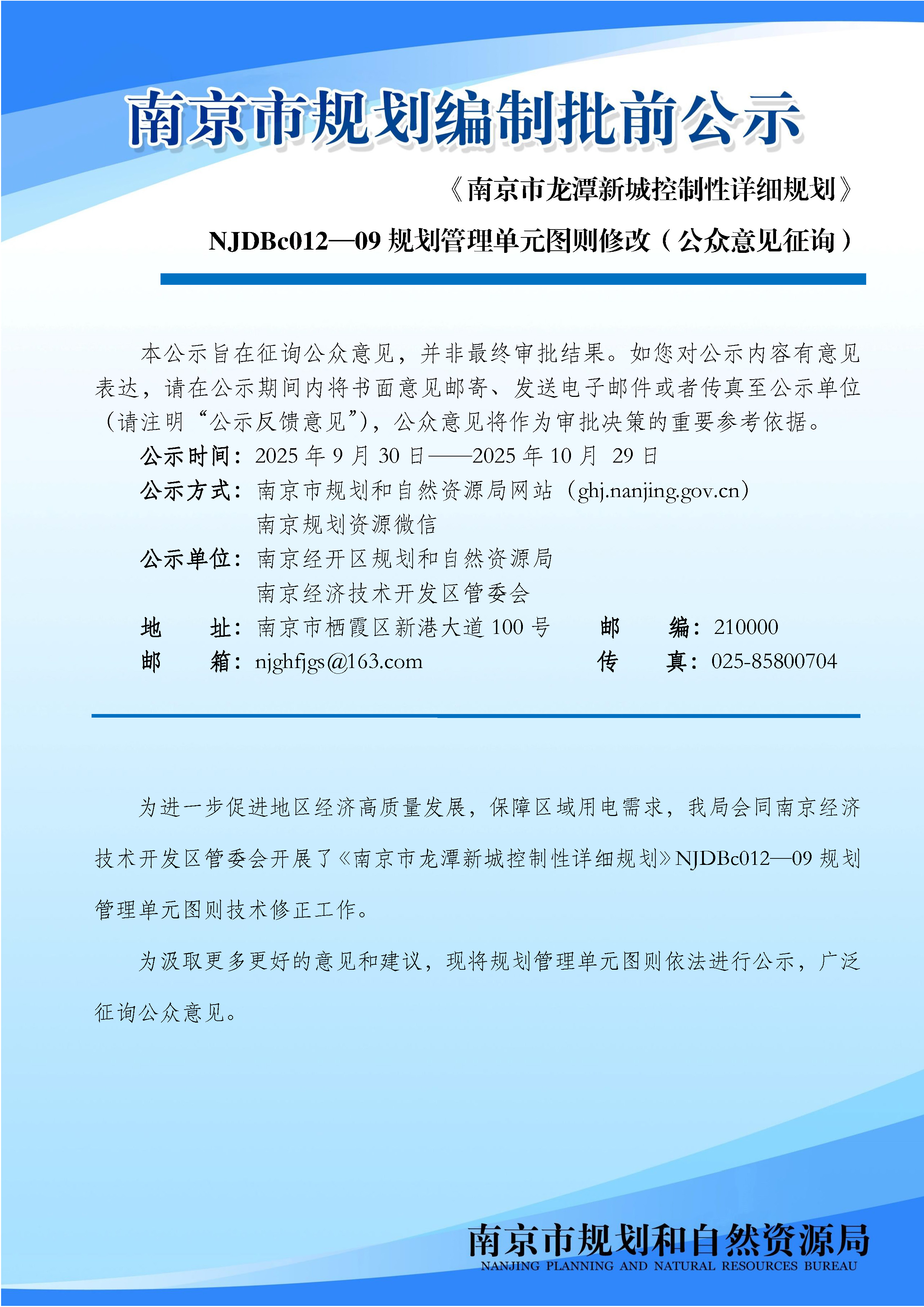 《南京市龙潭新城控制性详细规划》NJDBc012—09规划管理单元图则修改(公众意见征询)