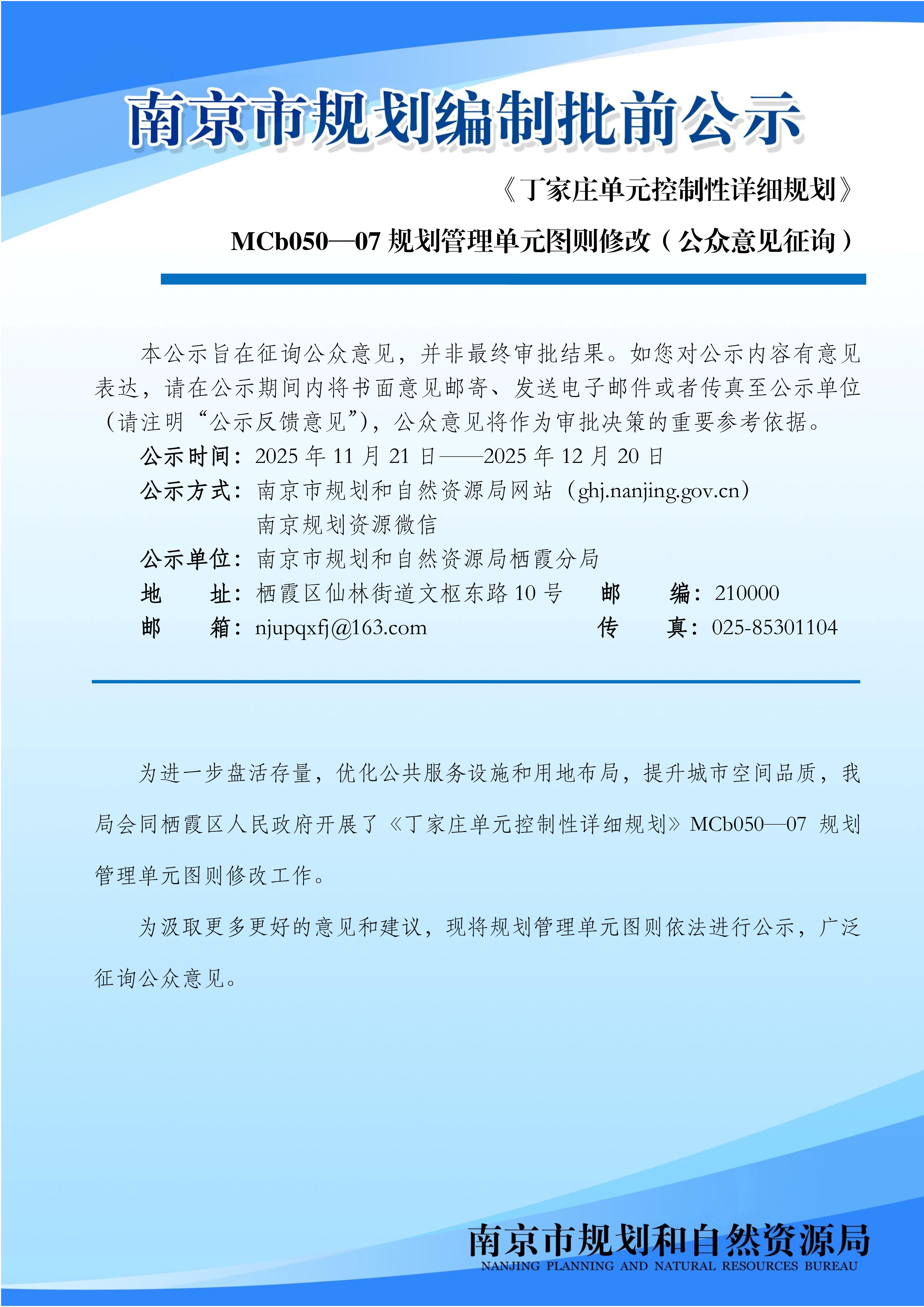 《丁家庄单元控制性详细规划》MCb050—07 规划管理单元图则修改(公众意见征询)