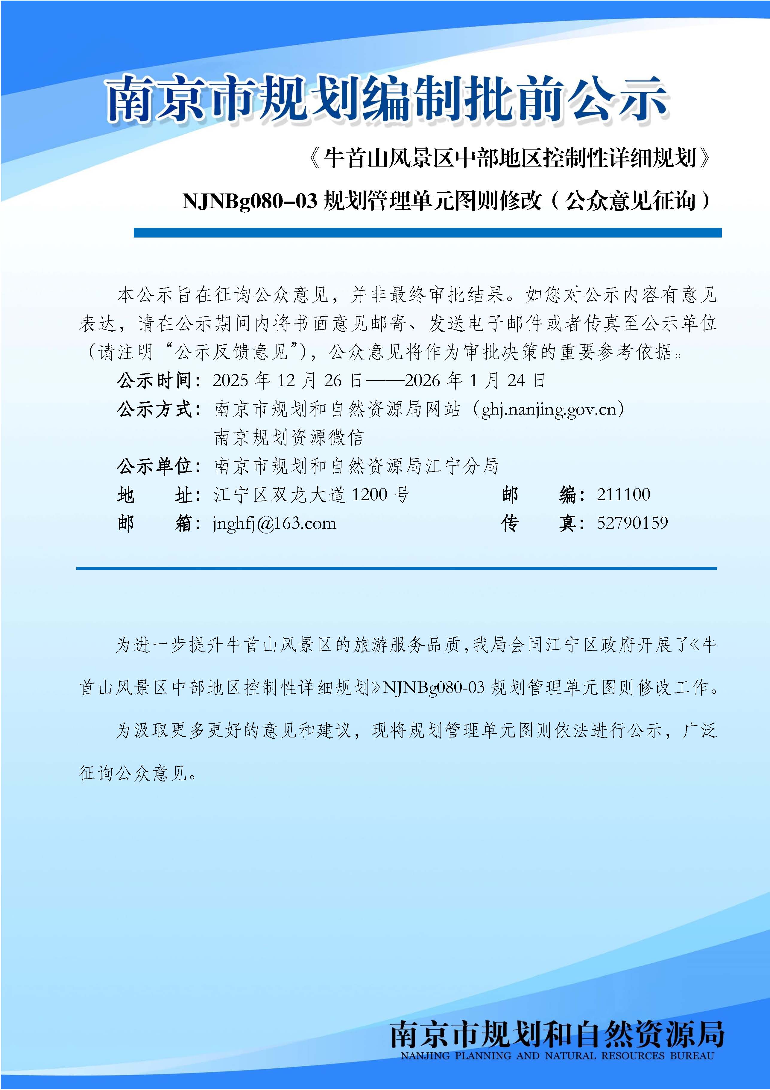 《牛首山风景区中部地区控制性详细规划》NJNBg080—03规划管理单元图则修改(公众意见征询)