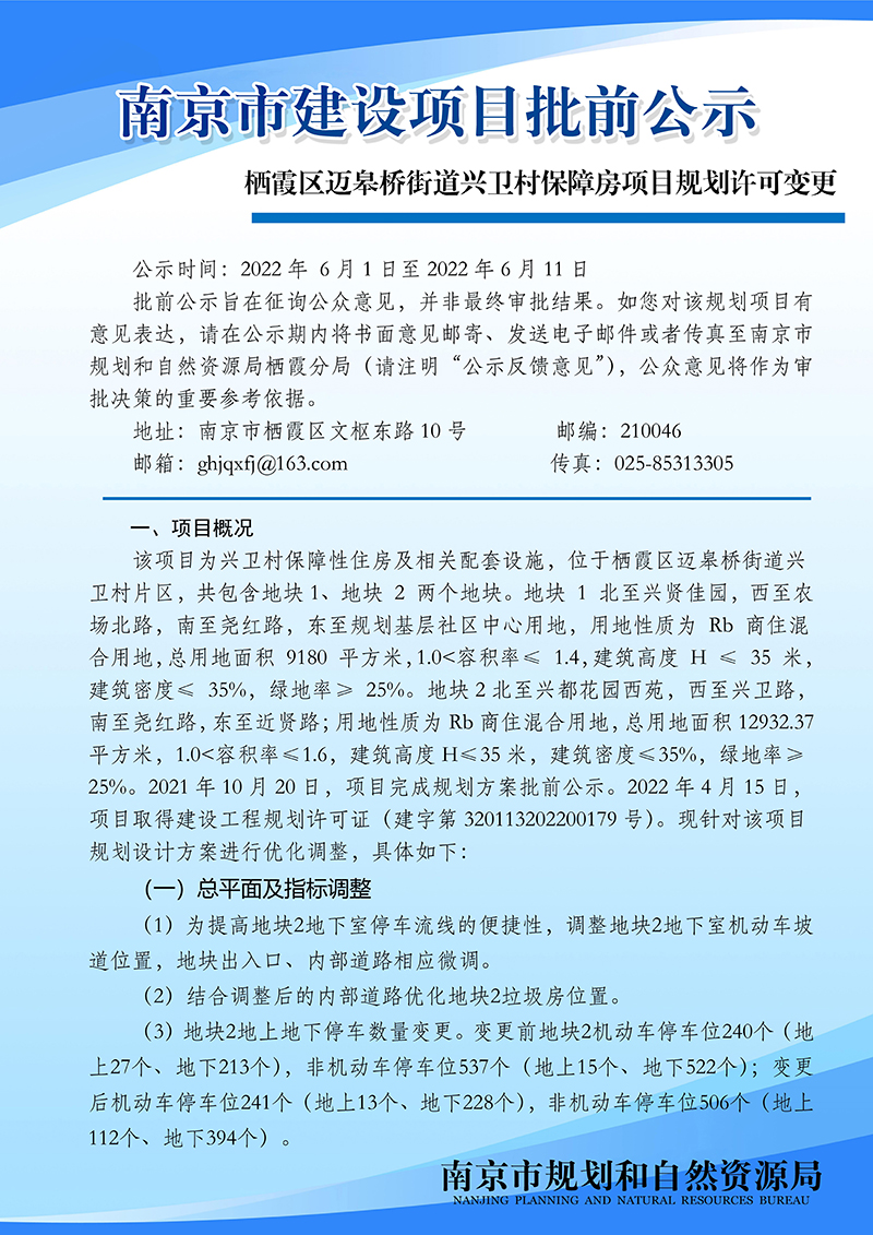 栖霞区迈皋桥街道兴卫村保障房项目规划许可变更批前公示