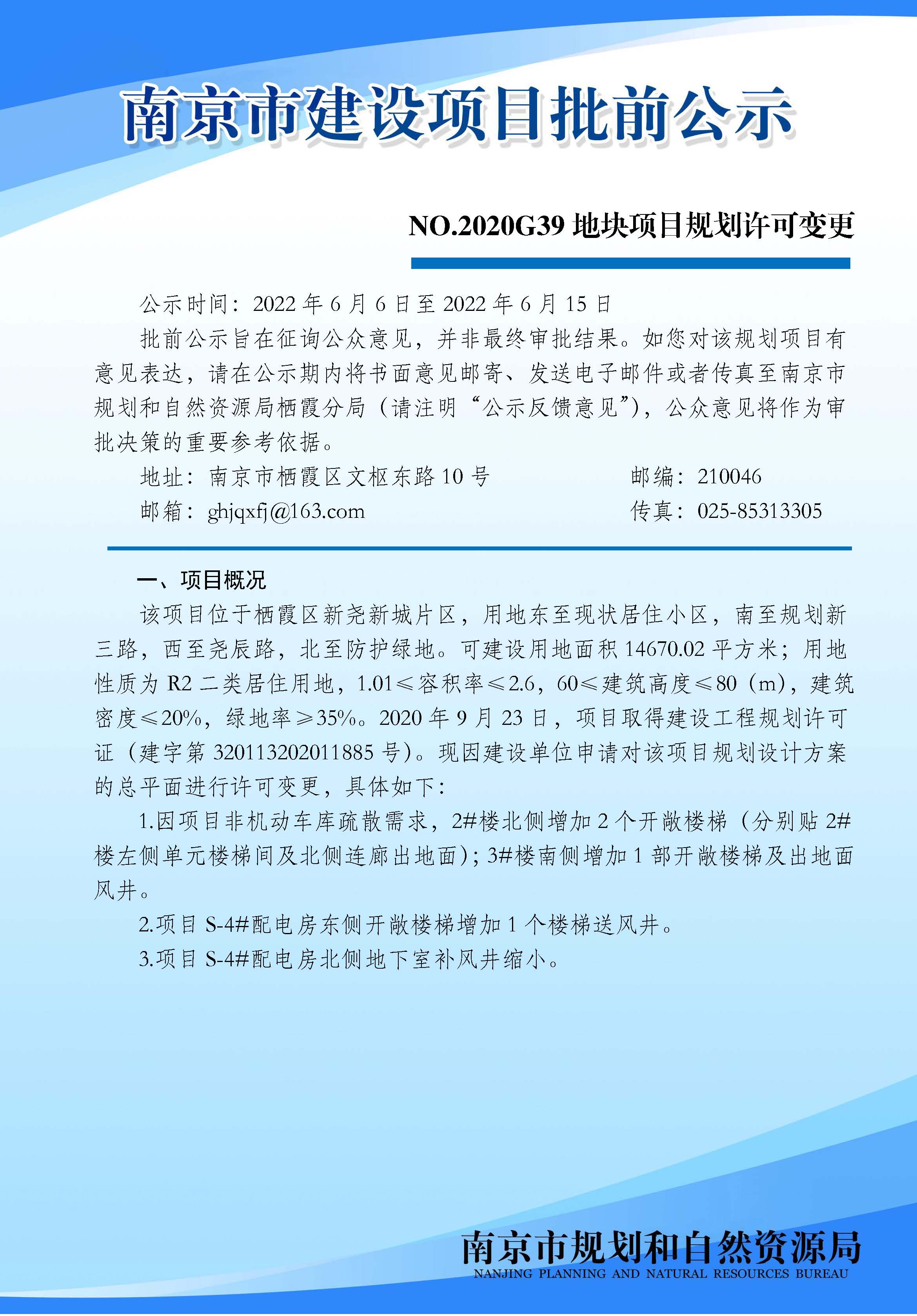 NO.2020G39地块项目规划许可变更批前公示