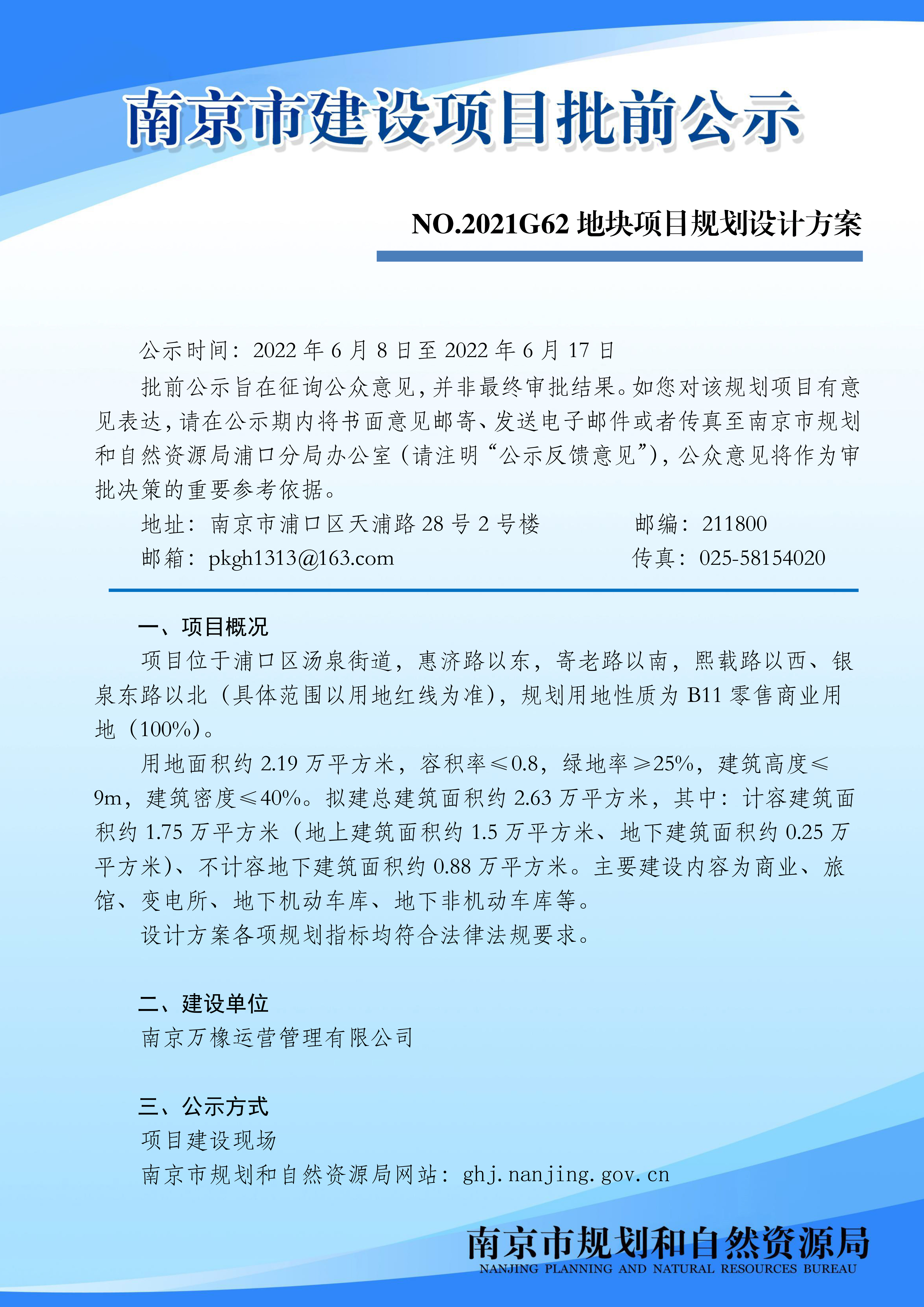 NO.2021G62地块项目规划设计方案批前公示