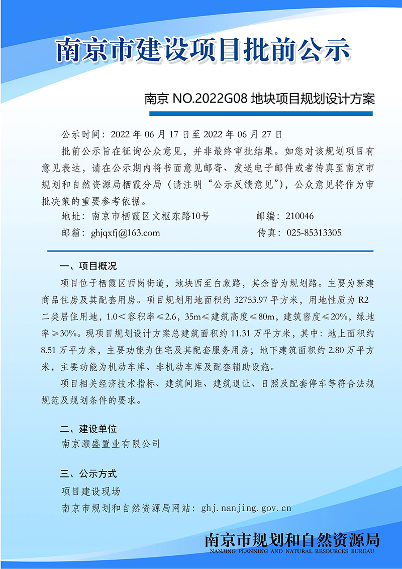 南京NO.2022G08地块项目规划设计方案批前公示