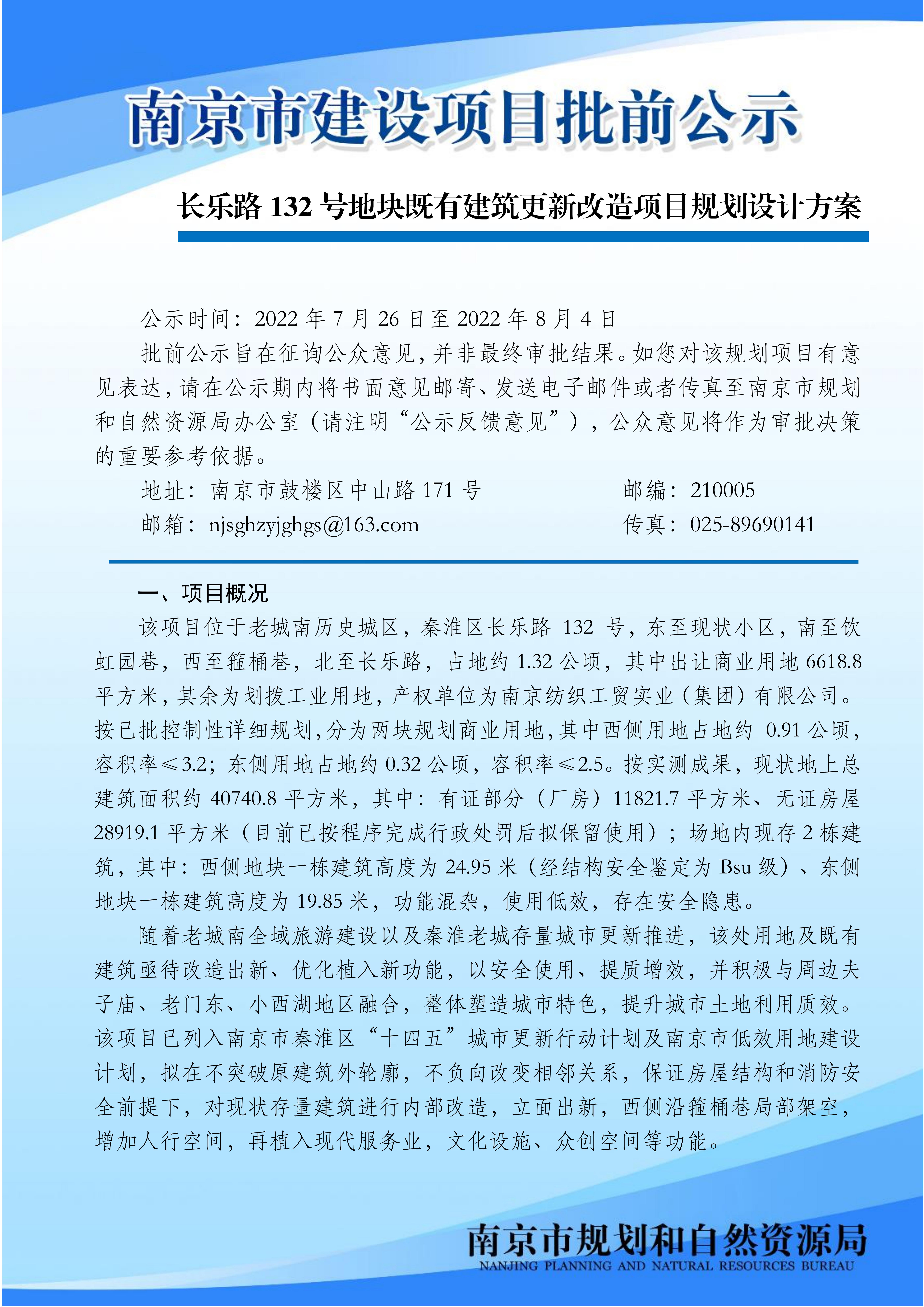 长乐路132号地块既有建筑更新改造项目规划设计方案批前公示