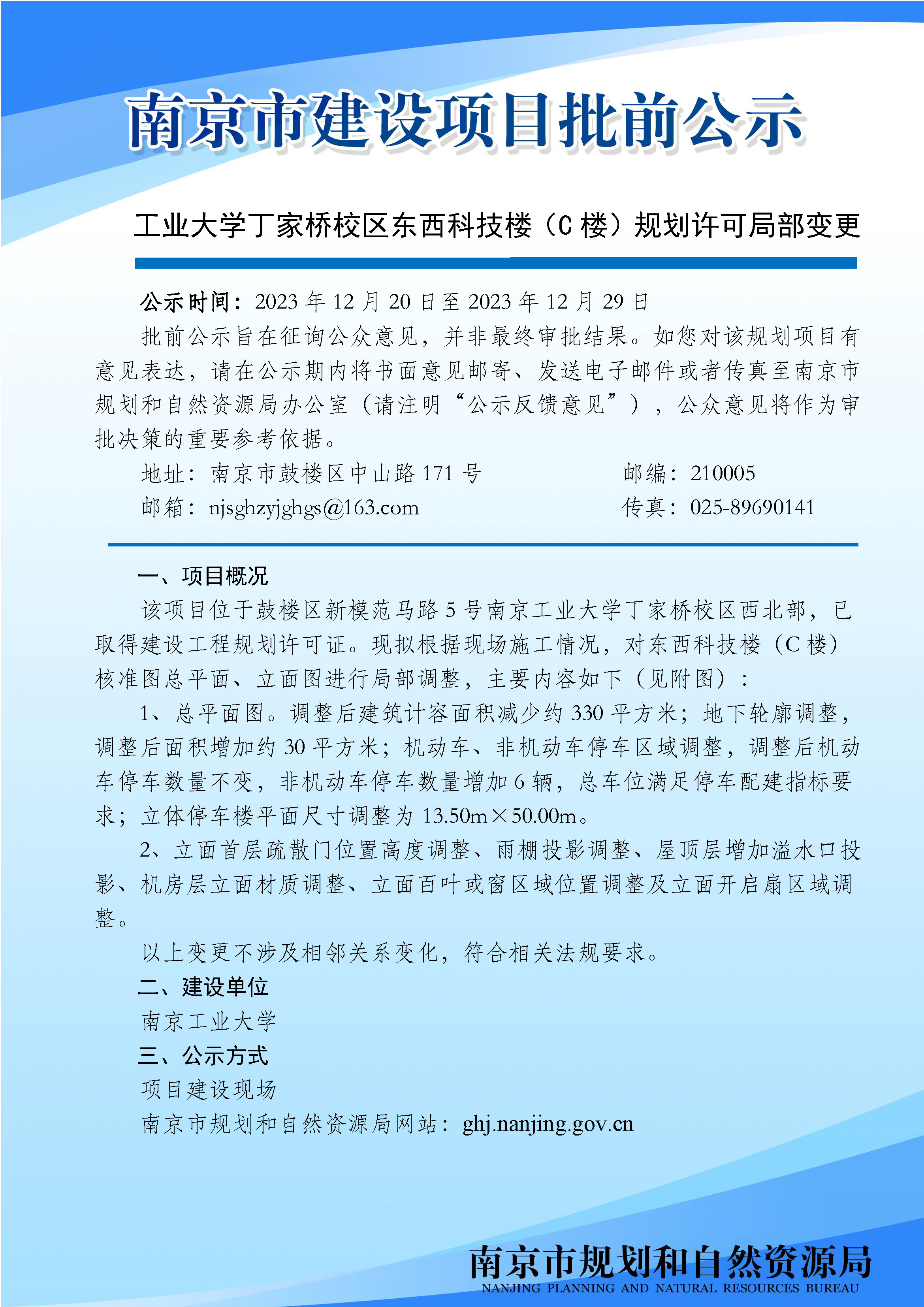 工业大学丁家桥校区东西科技楼(C楼)规划许可局部变更批前公示