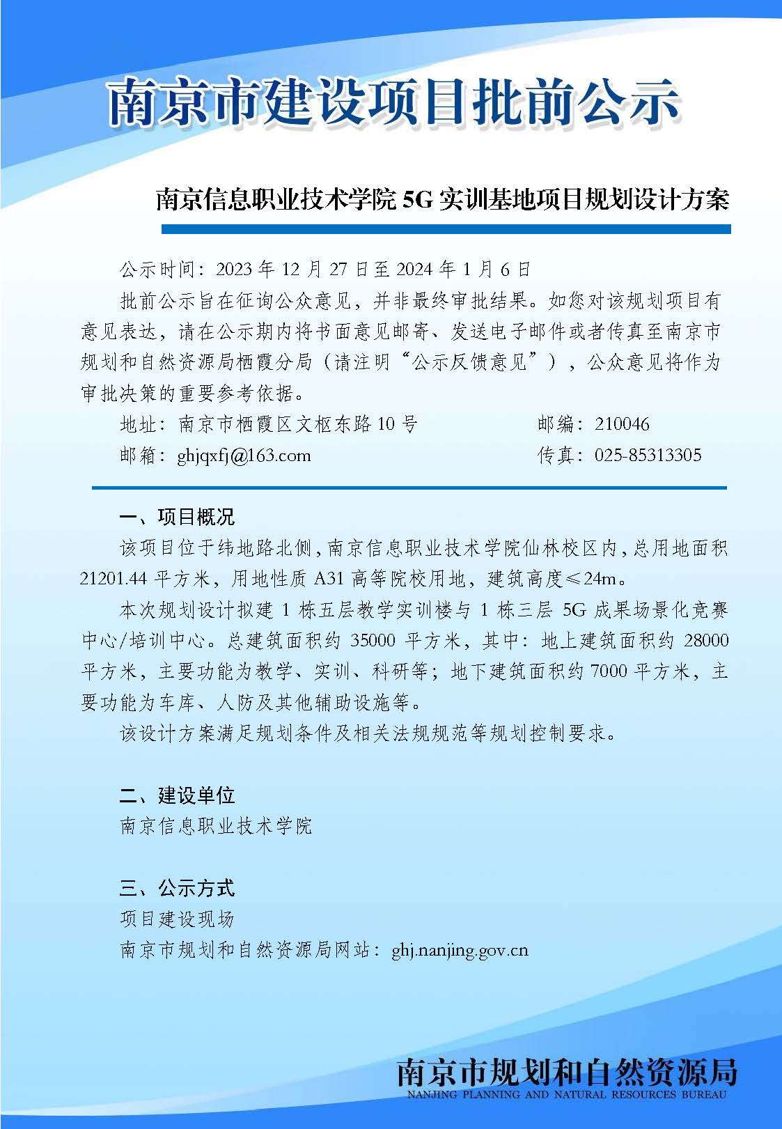 南京信息职业技术学院5G实训基地项目规划设计方案批前公示