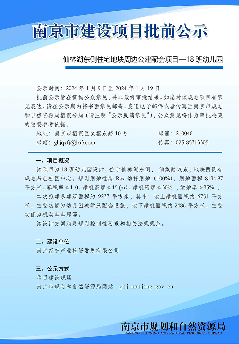 仙林湖东侧住宅地块周边公建配套项目—18班幼儿园设计方案批前公示