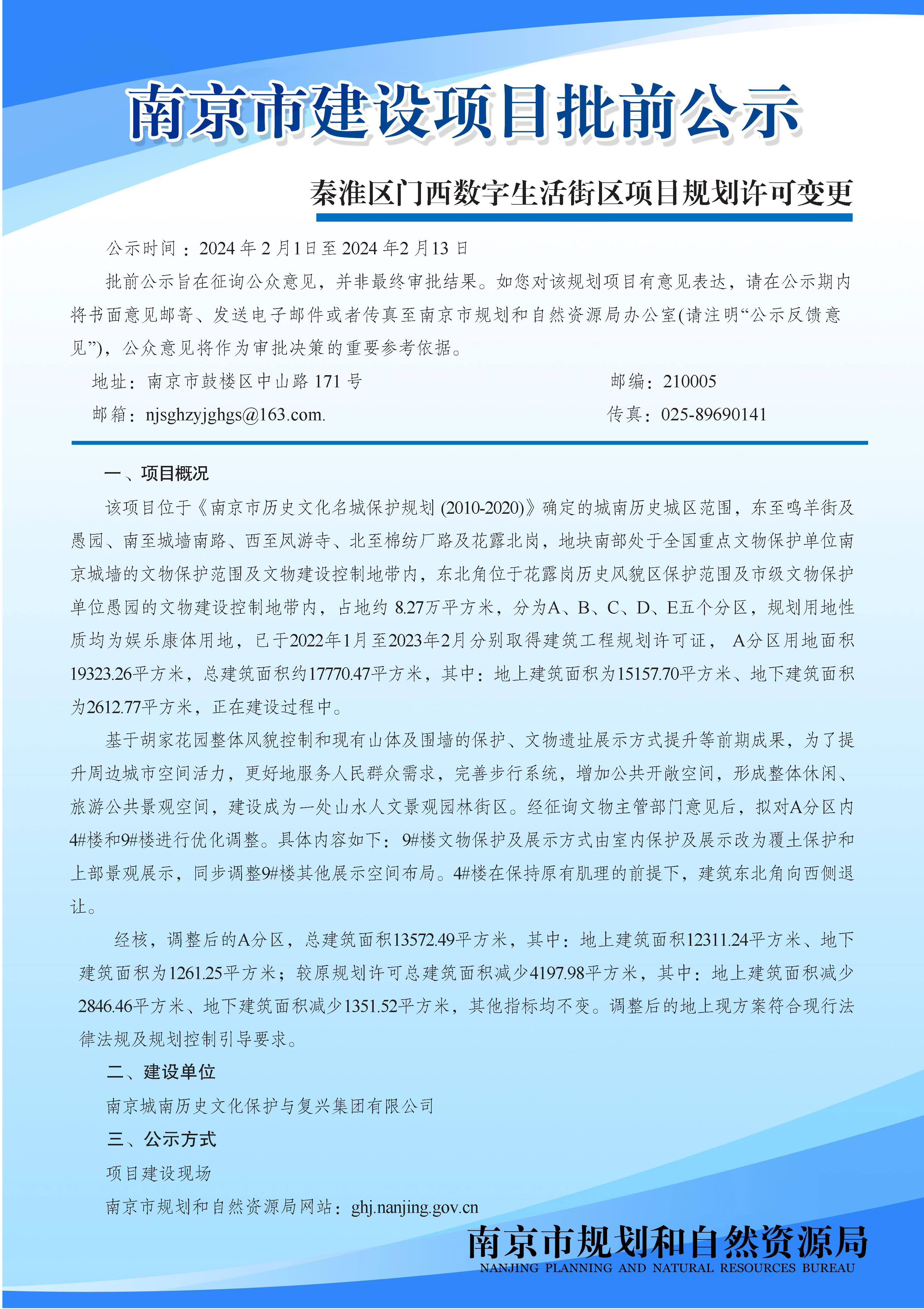 秦淮区门西数字生活街区项目规划许可变更批前公示