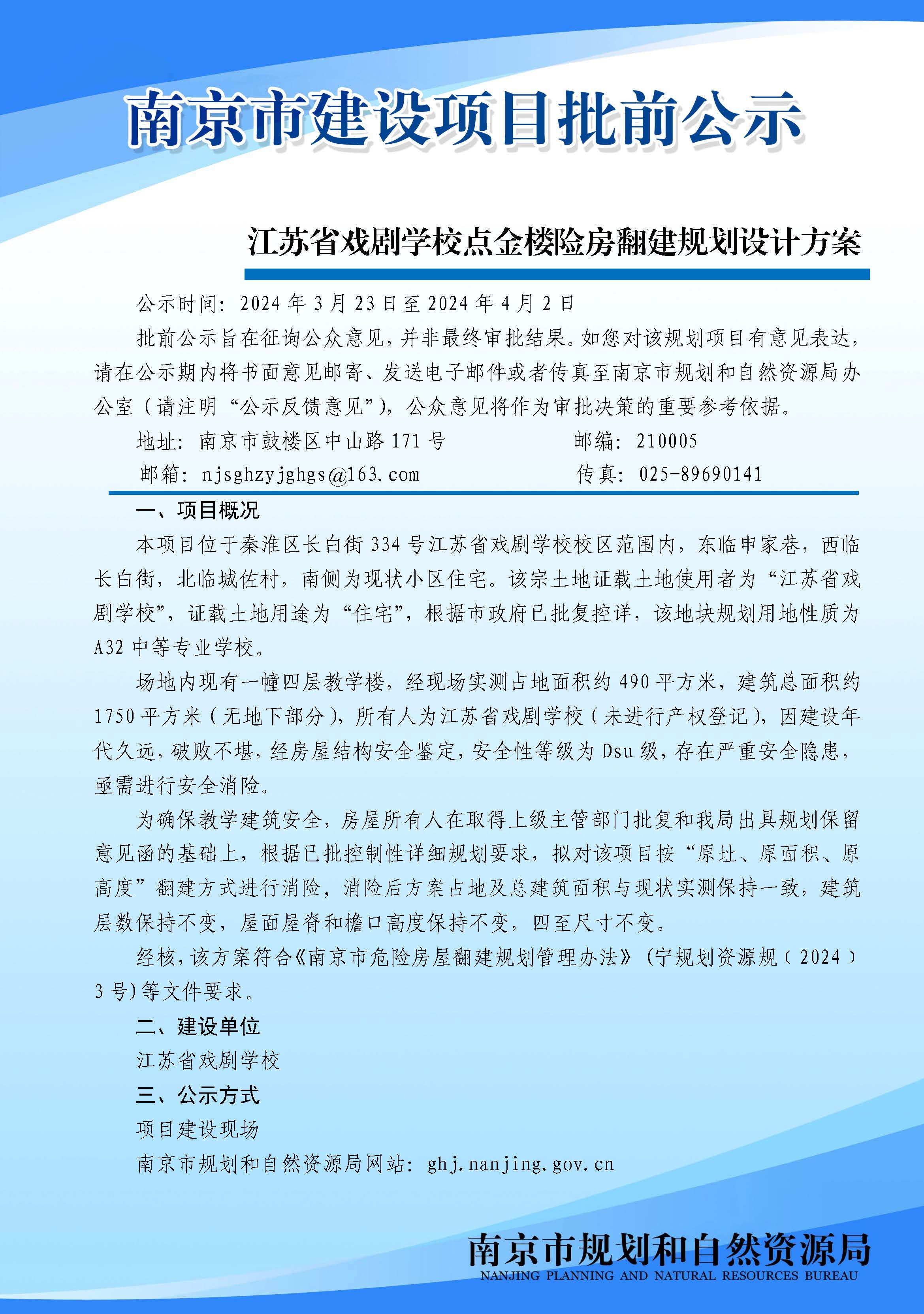 江苏省戏剧学校点金楼险房翻建规划设计方案批前公示
