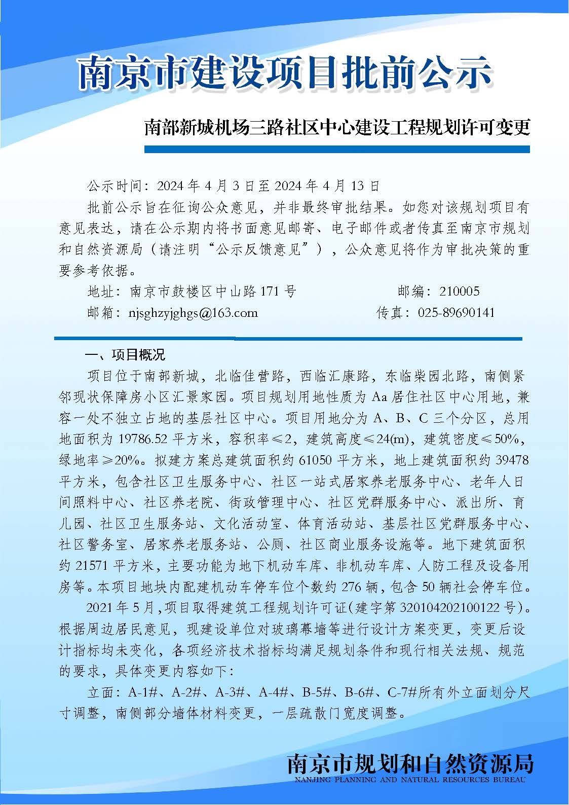 南部新城机场三路社区中心建设工程规划许可变更批前公示