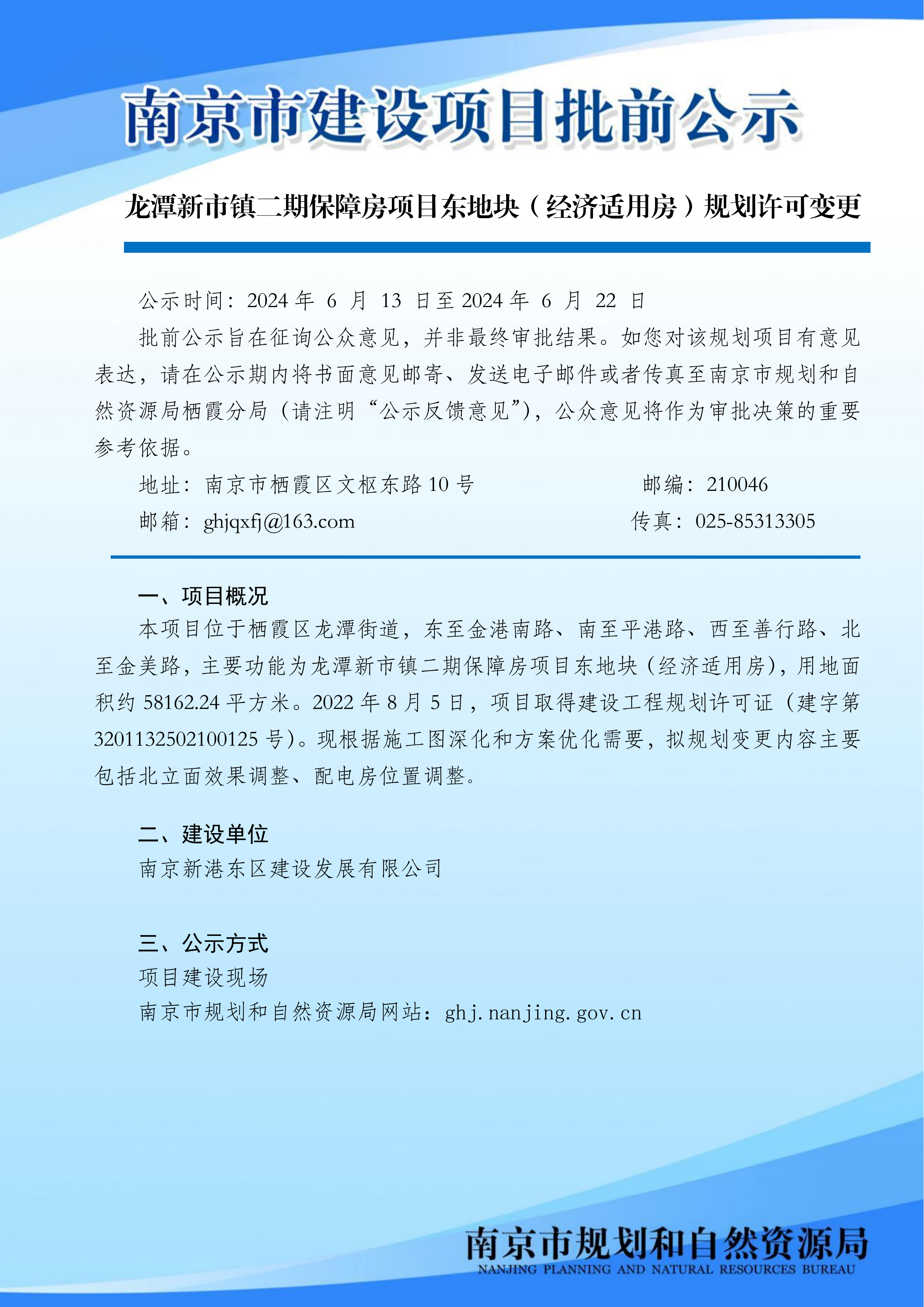 龙潭新市镇二期保障房项目东地块(经济适用房)规划许可变更批前公示