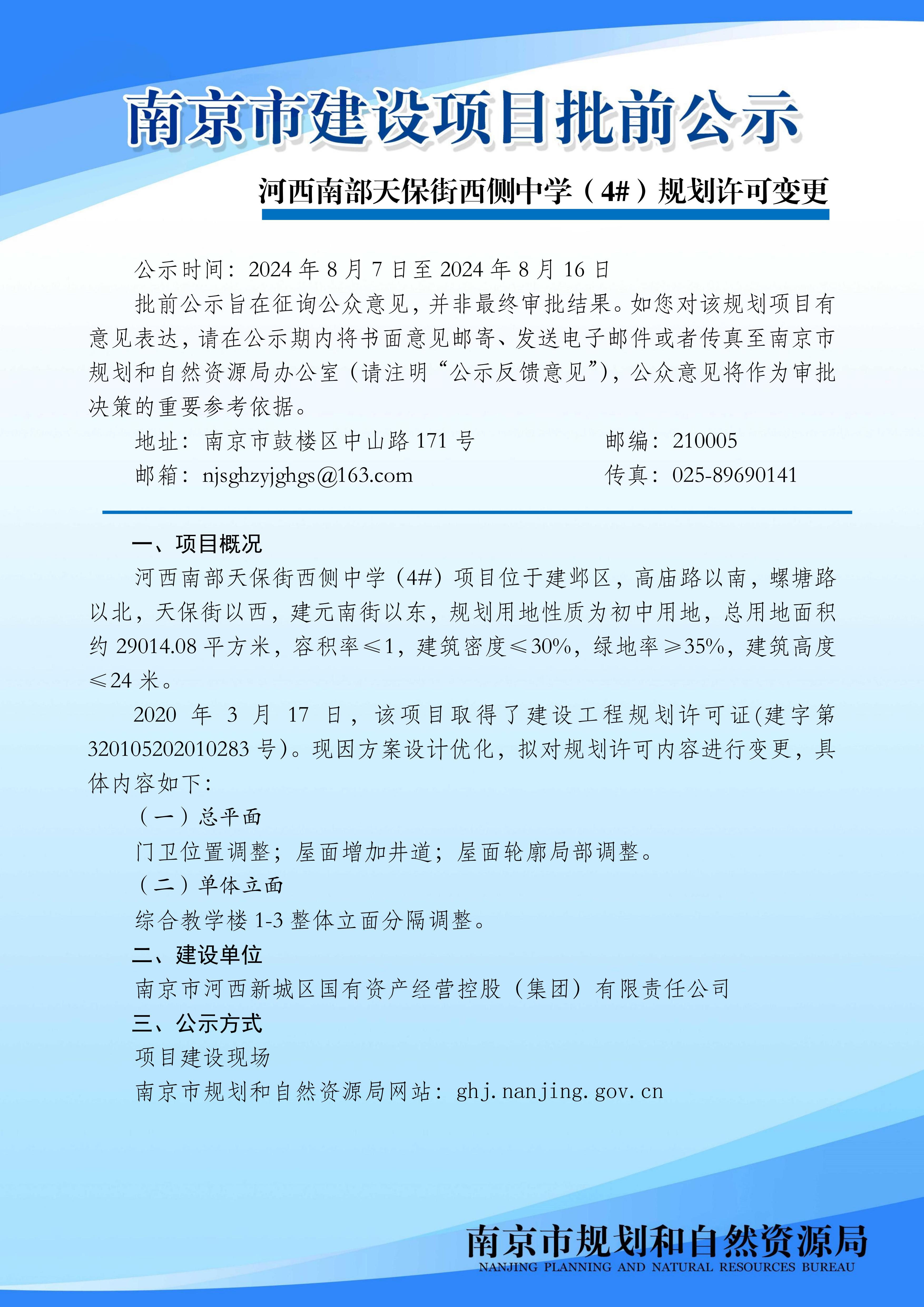河西南部天保街西侧中学(4#)规划许可变更批前公示