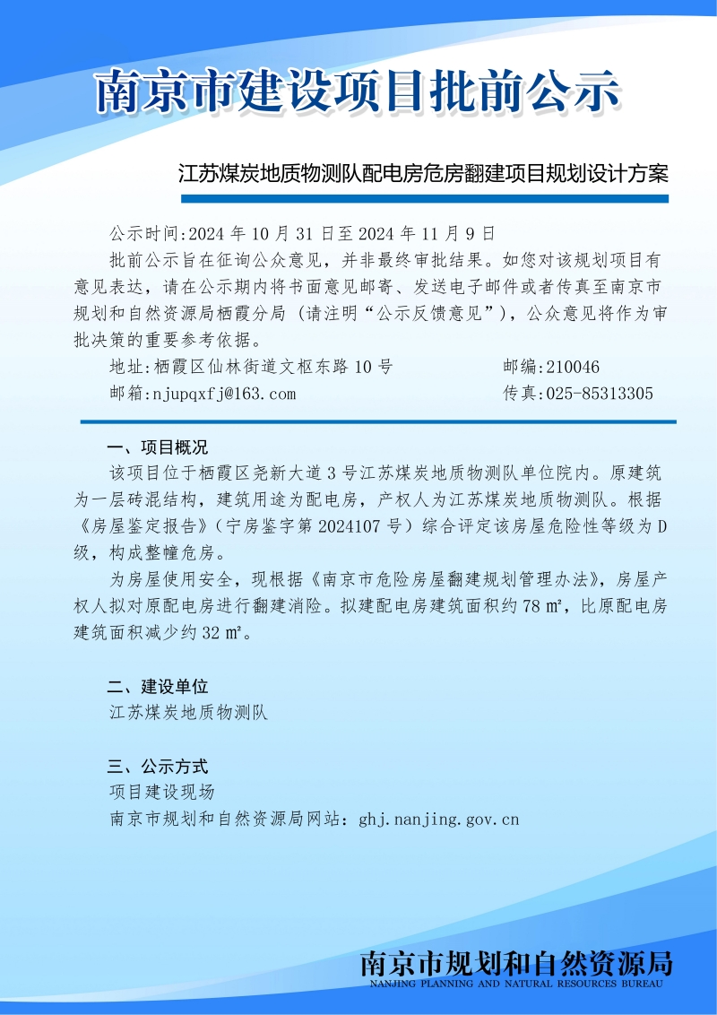 江苏煤炭地质物测队配电房危房翻建项目规划设计方案批前公示