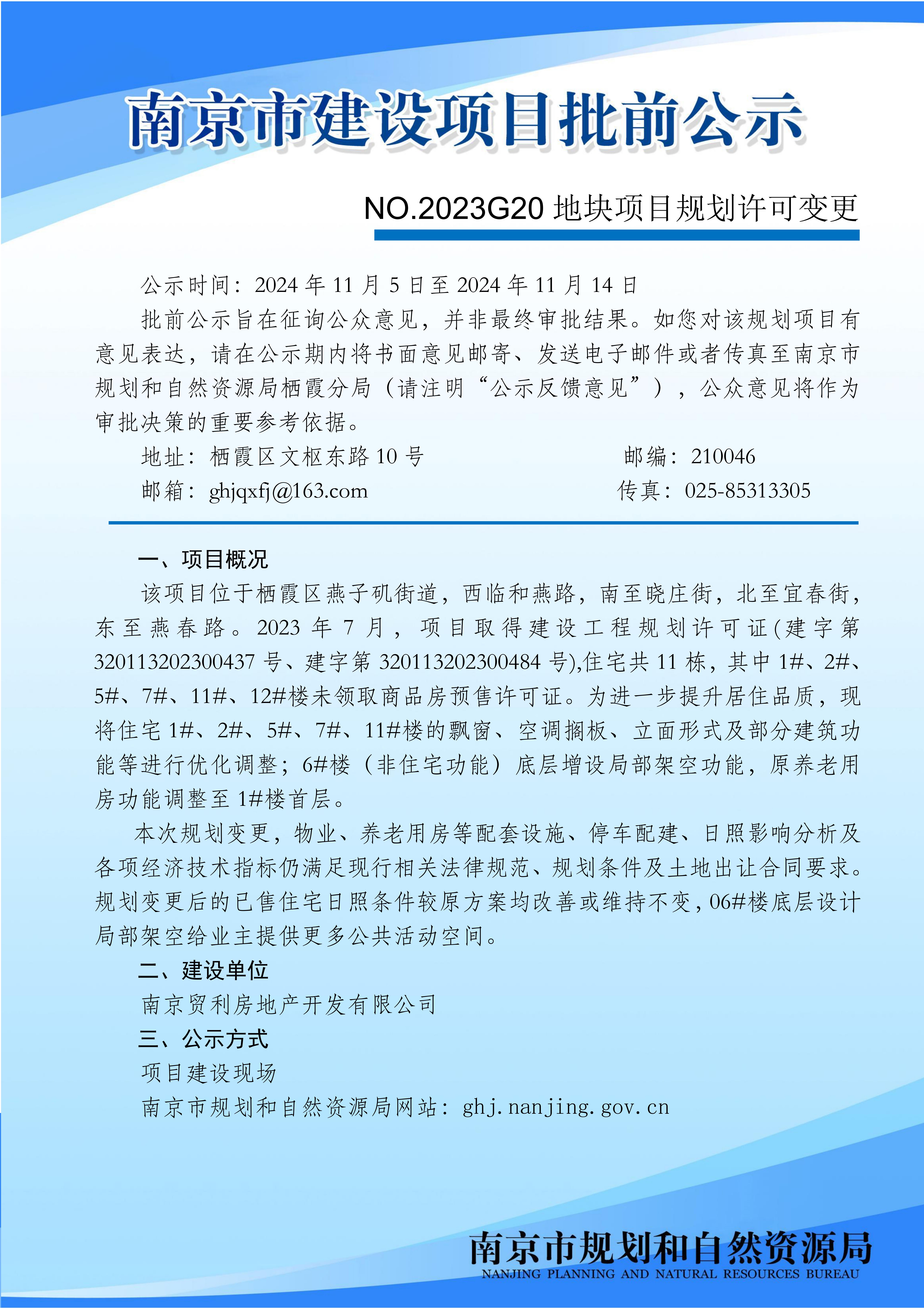 NO.2023G20地块项目规划许可变更批前公示