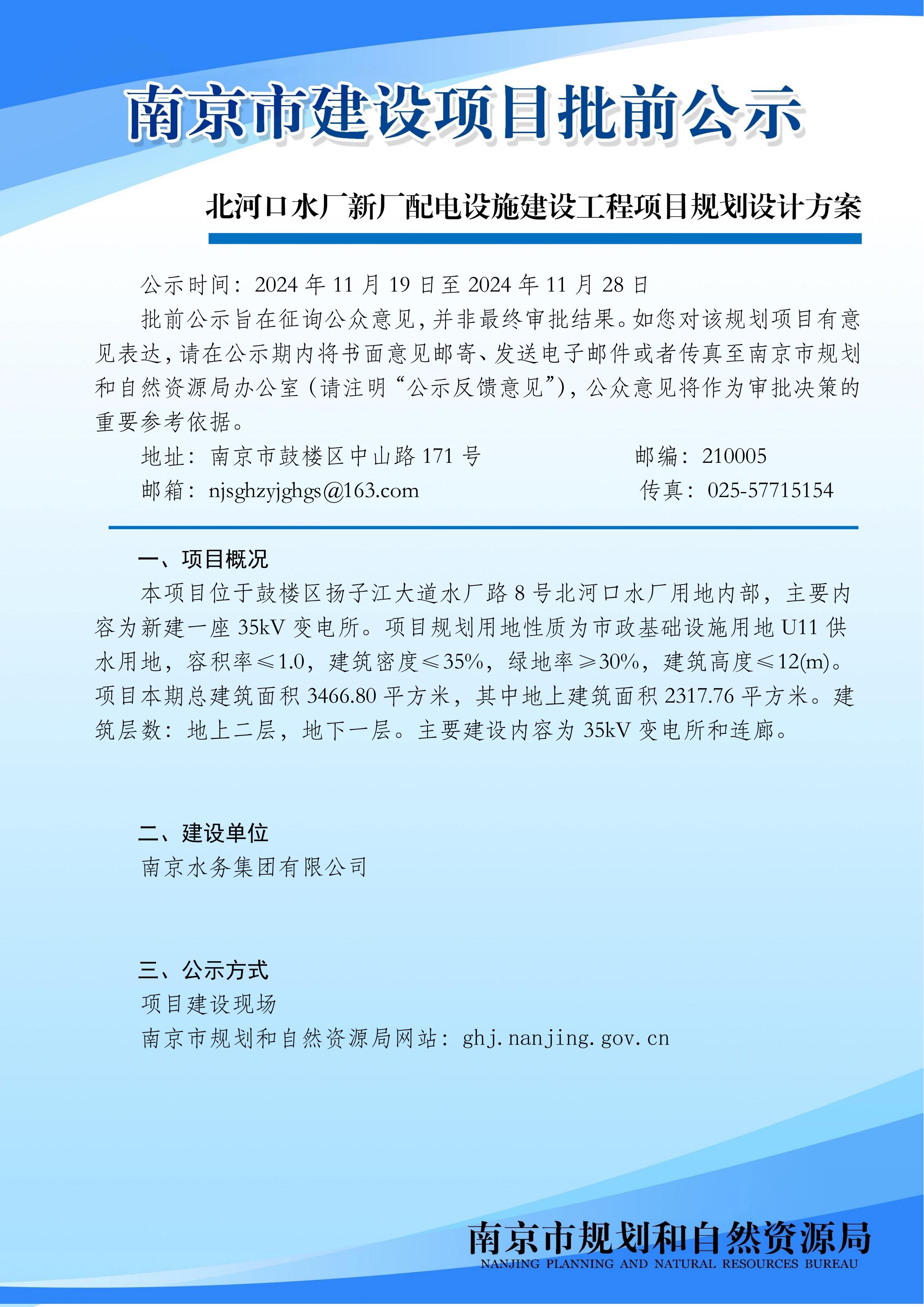 北河口水厂新厂配电设施建设工程项目规划设计方案批前公示