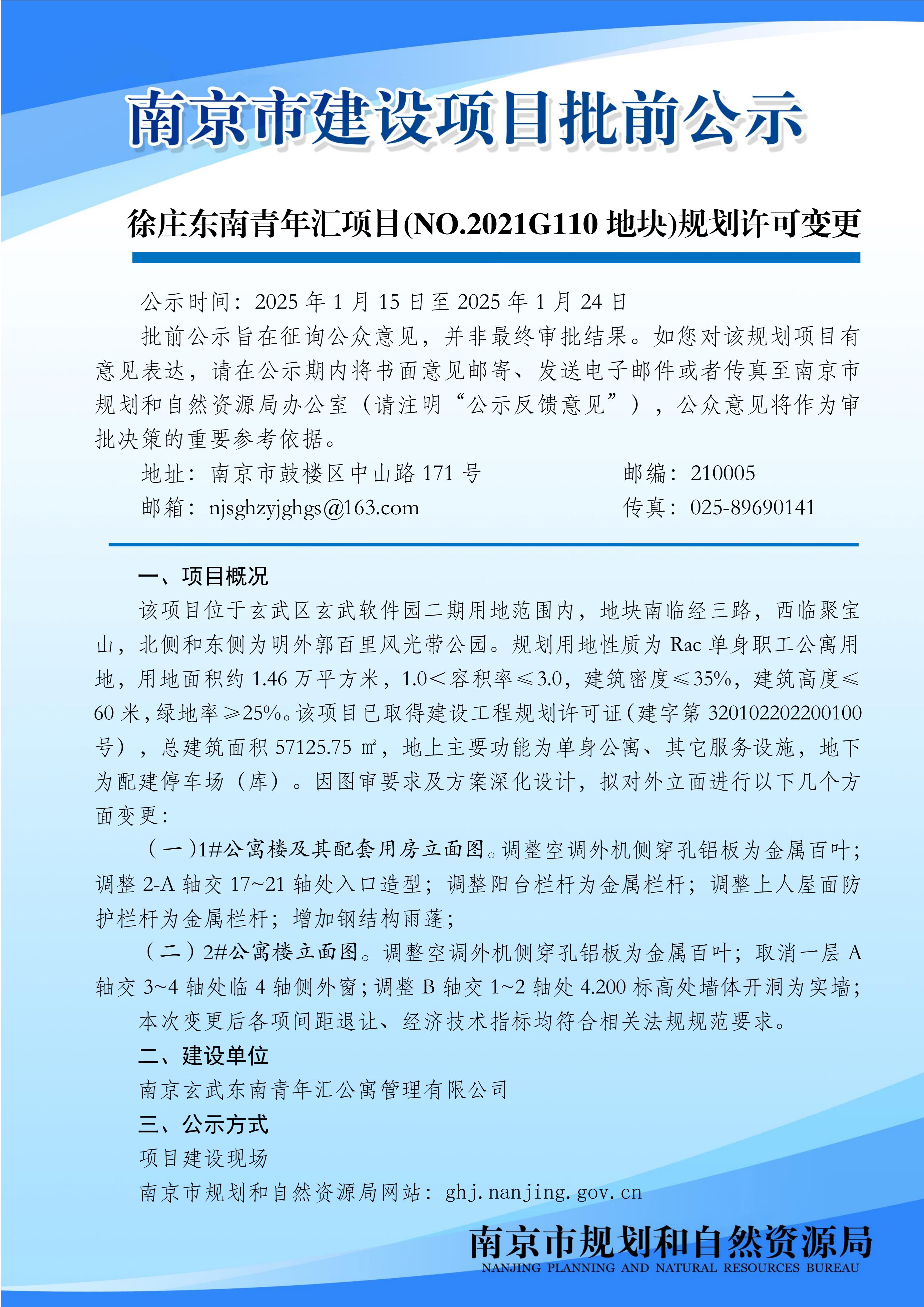 徐庄东南青年汇项目(NO.2021G110地块)规划许可变更批前公示